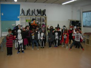 Les nenes i els nens de 1r hem celebrat Halloween. Aquest any, com que estem a primària, ens hem disfressat de personatges terrorífics i hem ballat danses de por i alhora divertides.