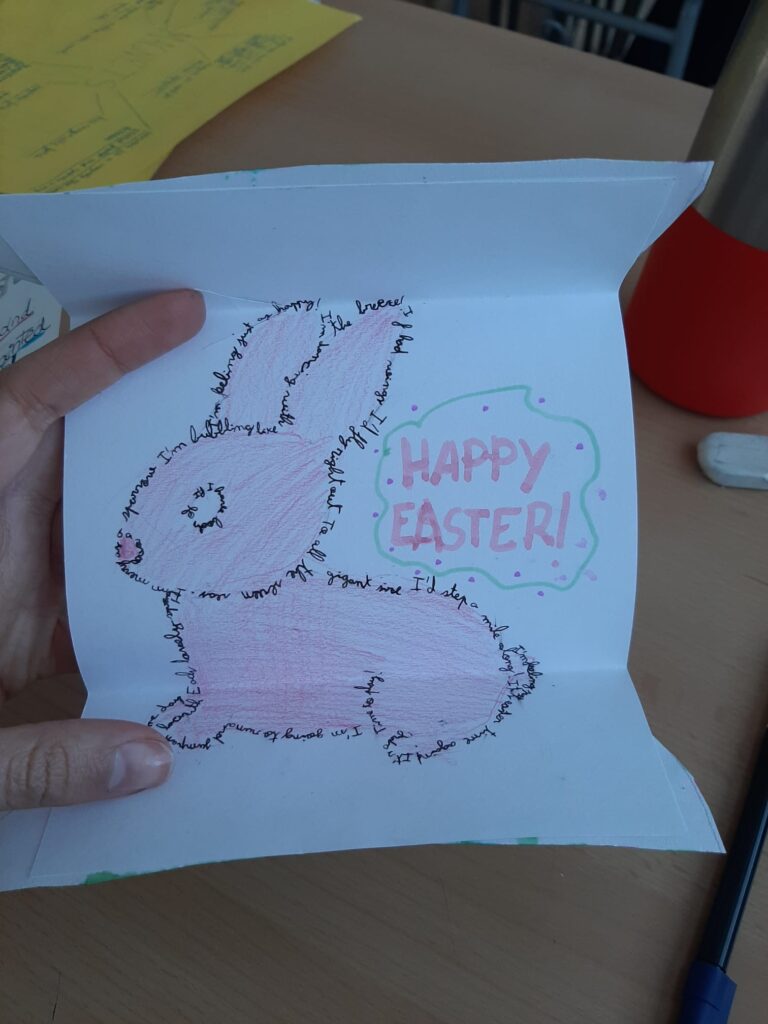 Easter cards for our pen pals Cicle Superior Collserola22/03/23 Hello everyone! A sisè hem fet unes Easter cards per intercanviar amb els nostres pen pals de diferents escoles de Cerdanyola. Han quedat d’allò més originals!