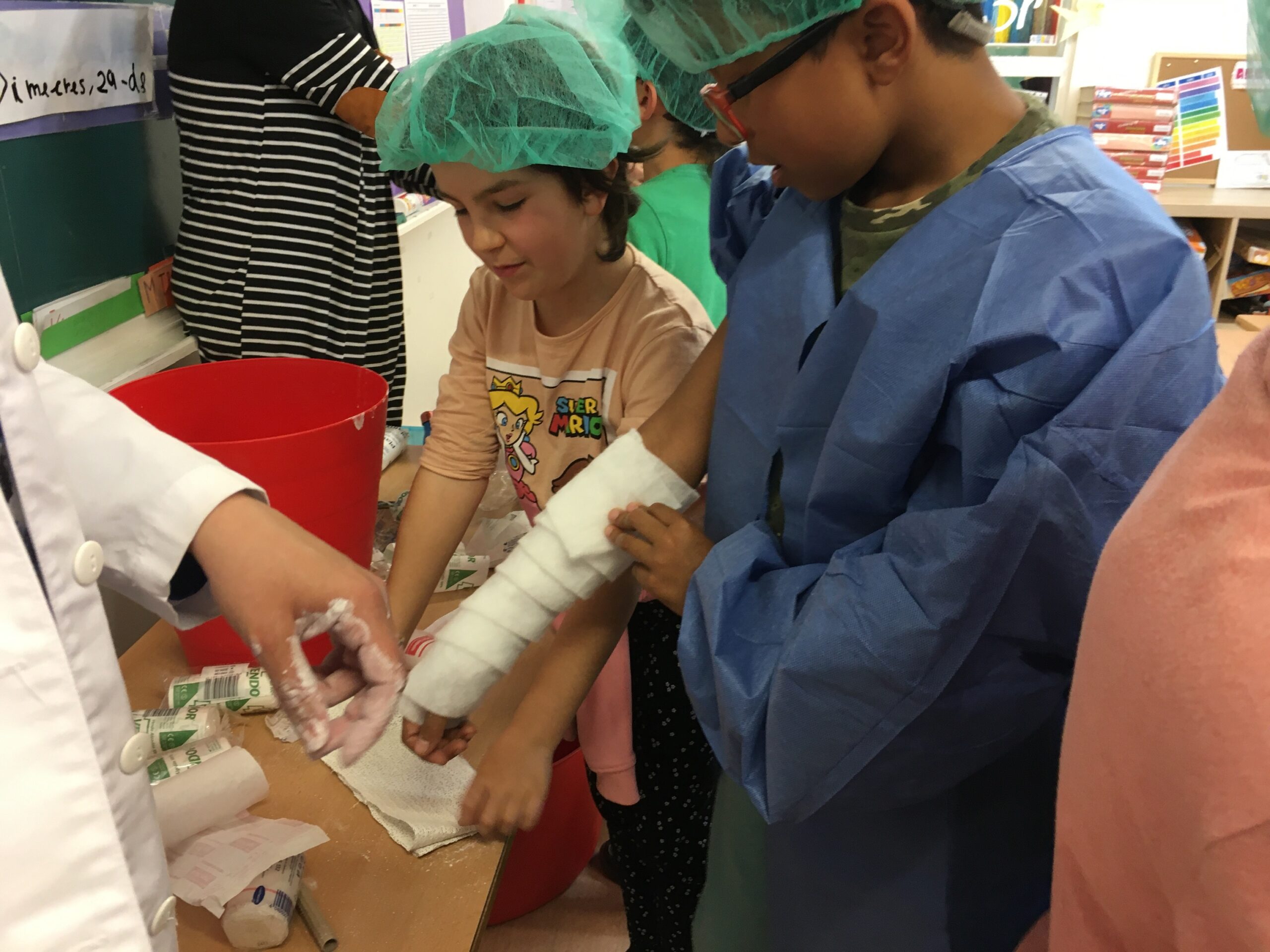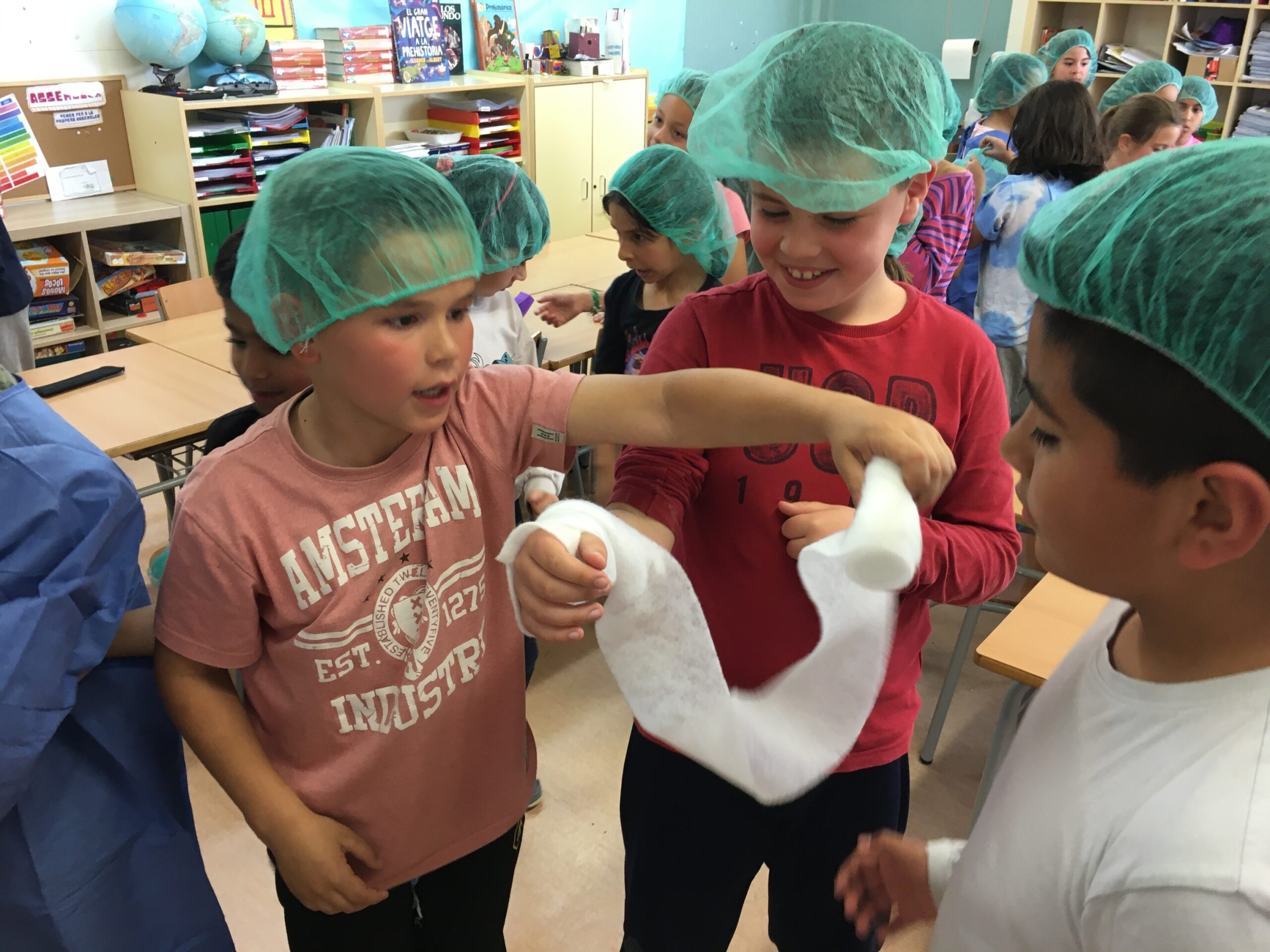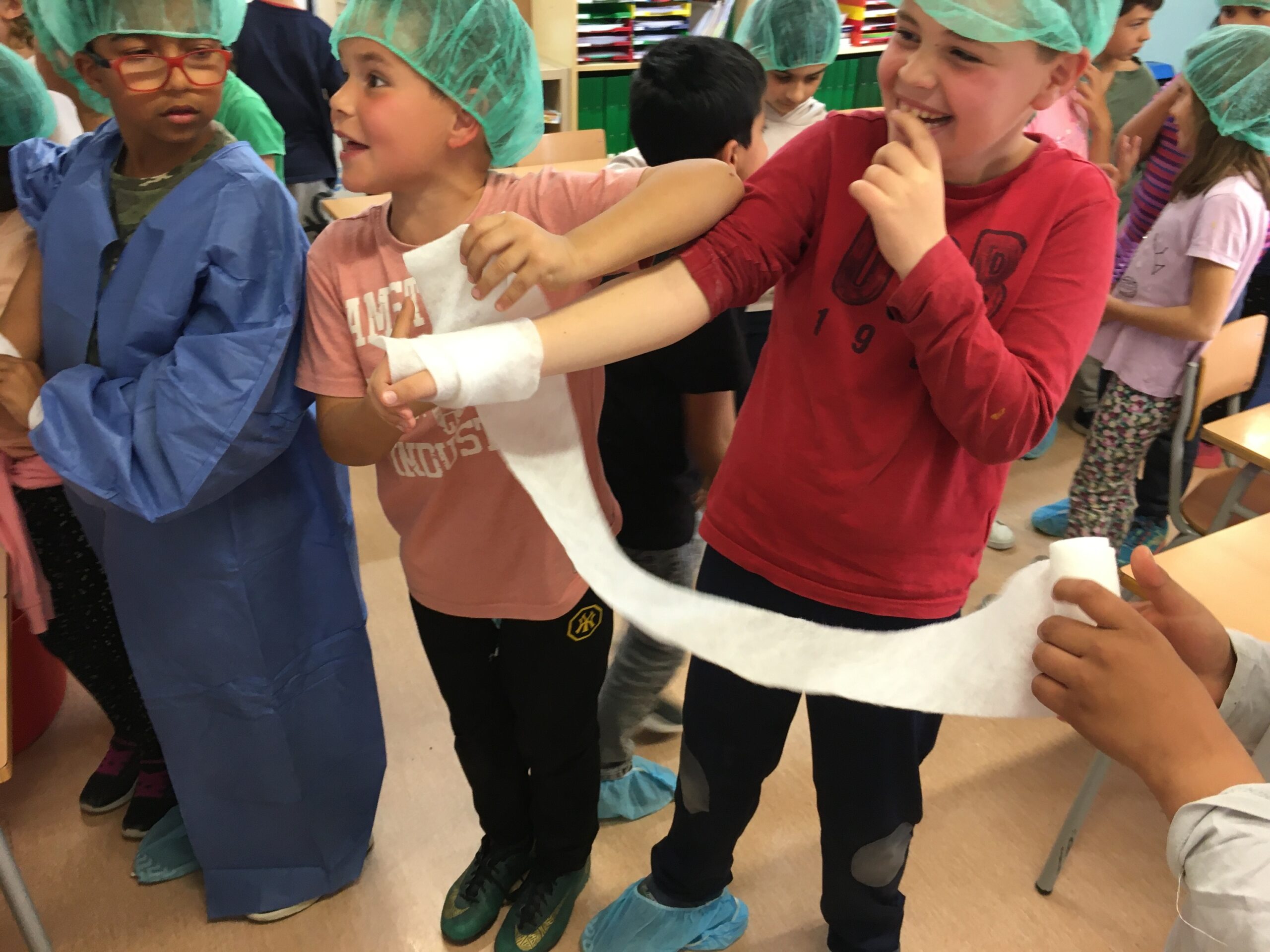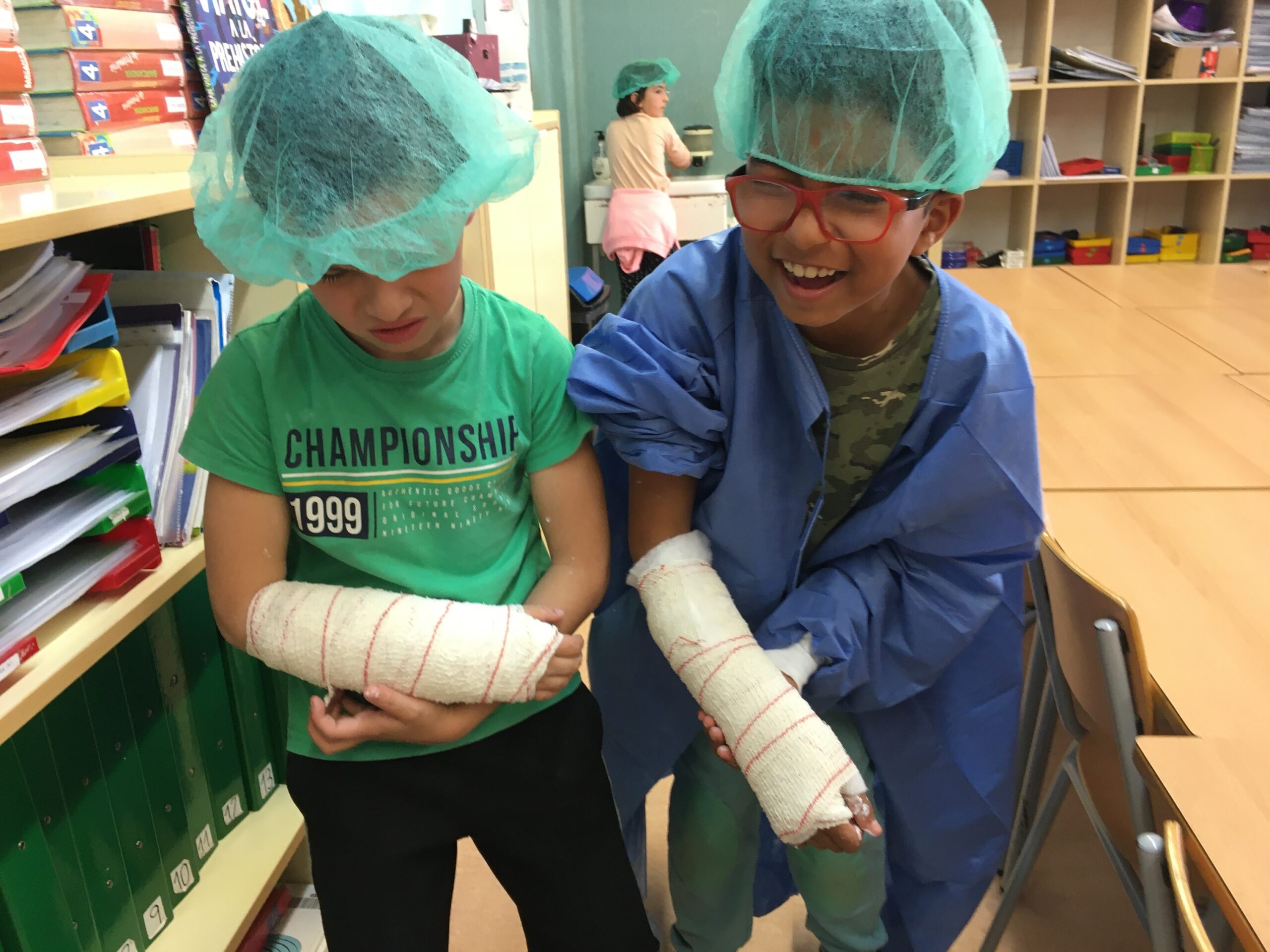 Ens visiten les infermeres Sara i Lídia, per explicar-nos coses dels servei de salut del que gaudim els ciutadants. Ho hem comparat amb un país pobre com la Índia. Hem fet de metges, infermeres i pacients. Ha estat molt divertit! Moltes gràcies per venir!