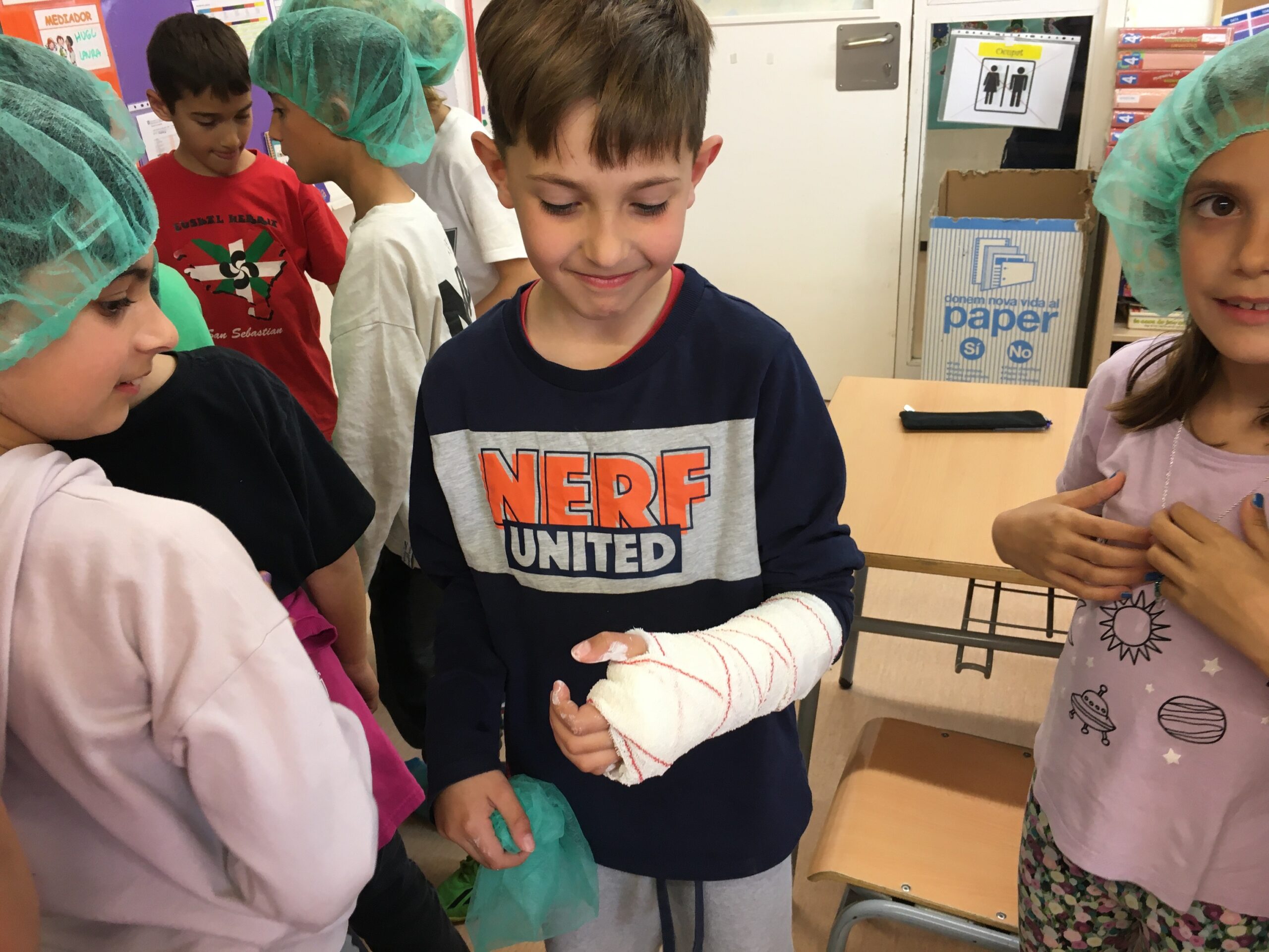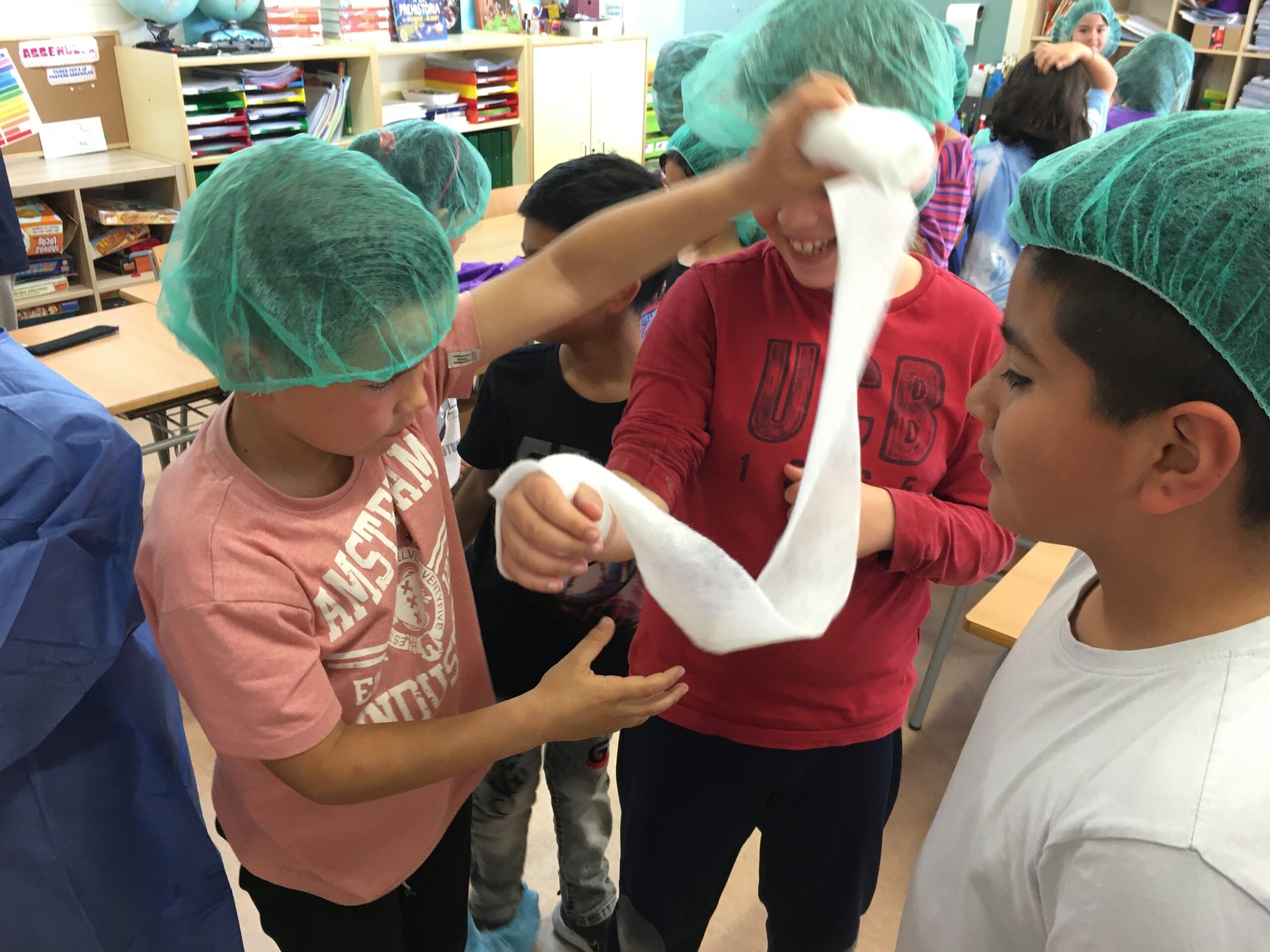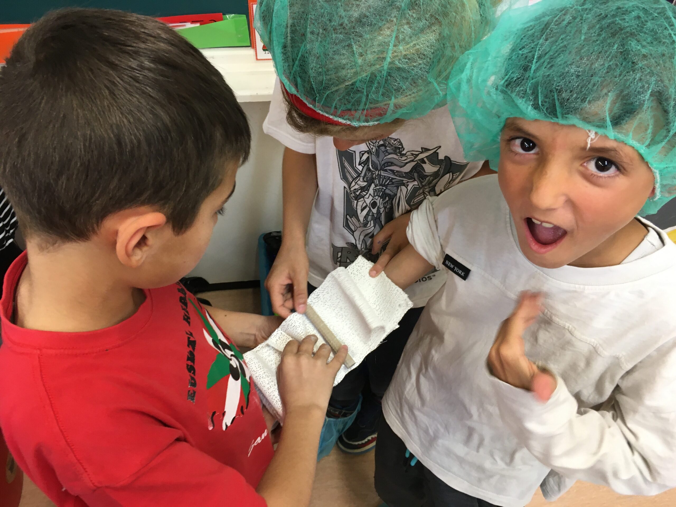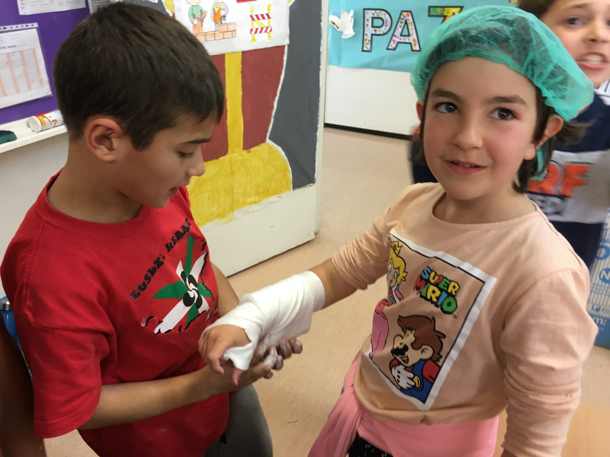 Ens visiten les infermeres Sara i Lídia, per explicar-nos coses dels servei de salut del que gaudim els ciutadants. Ho hem comparat amb un país pobre com la Índia. Hem fet de metges, infermeres i pacients. Ha estat molt divertit! Moltes gràcies per venir!