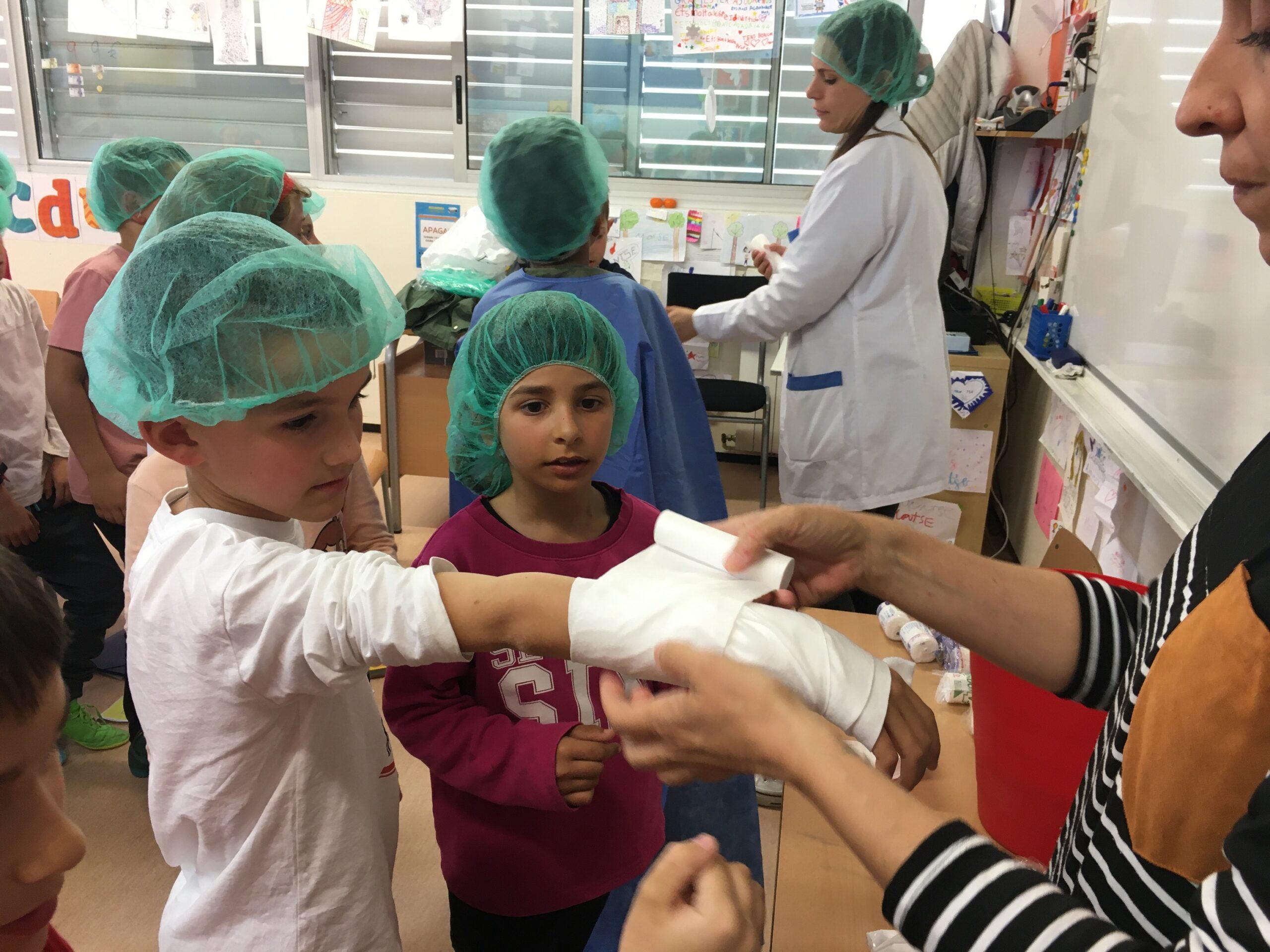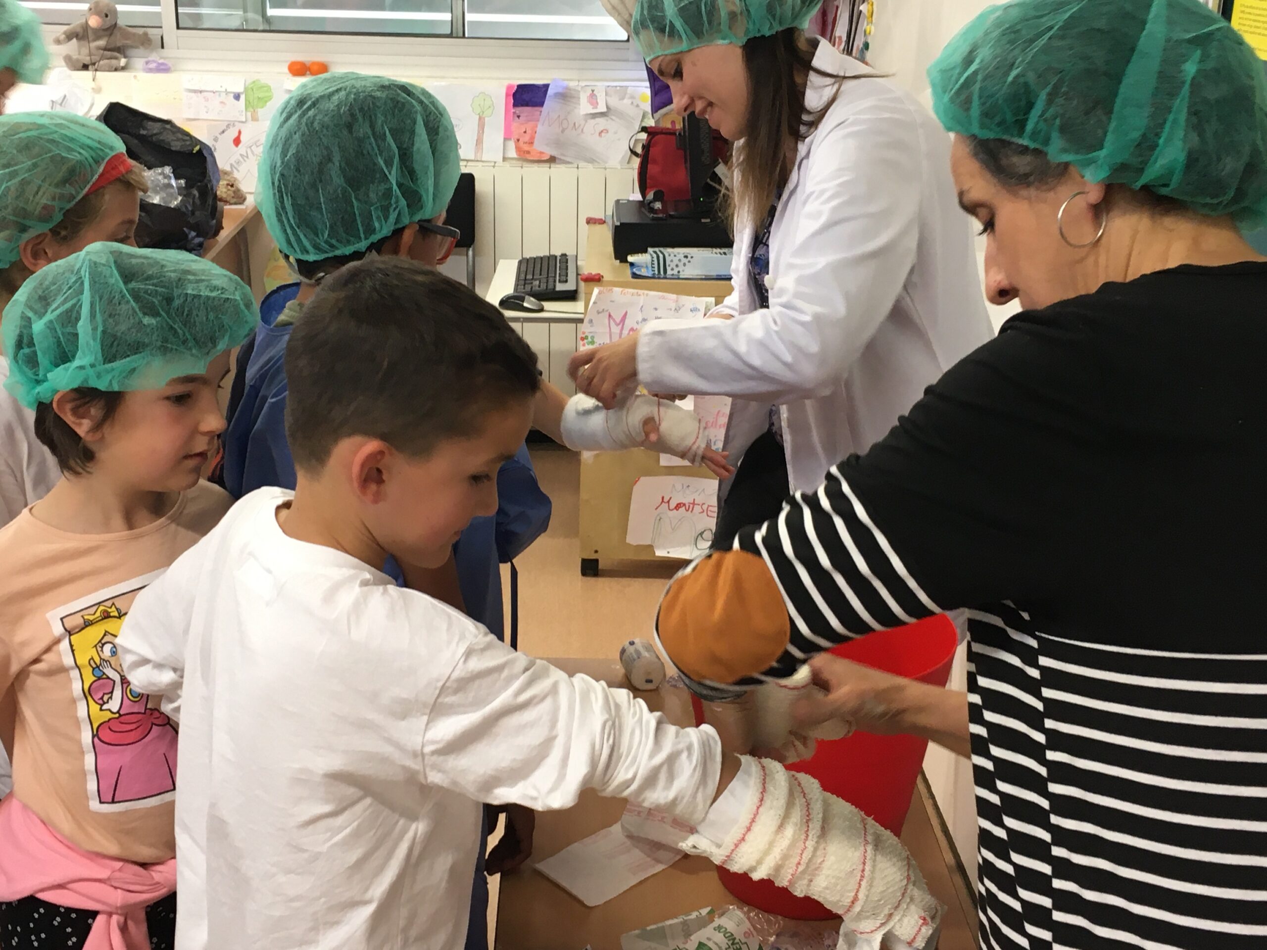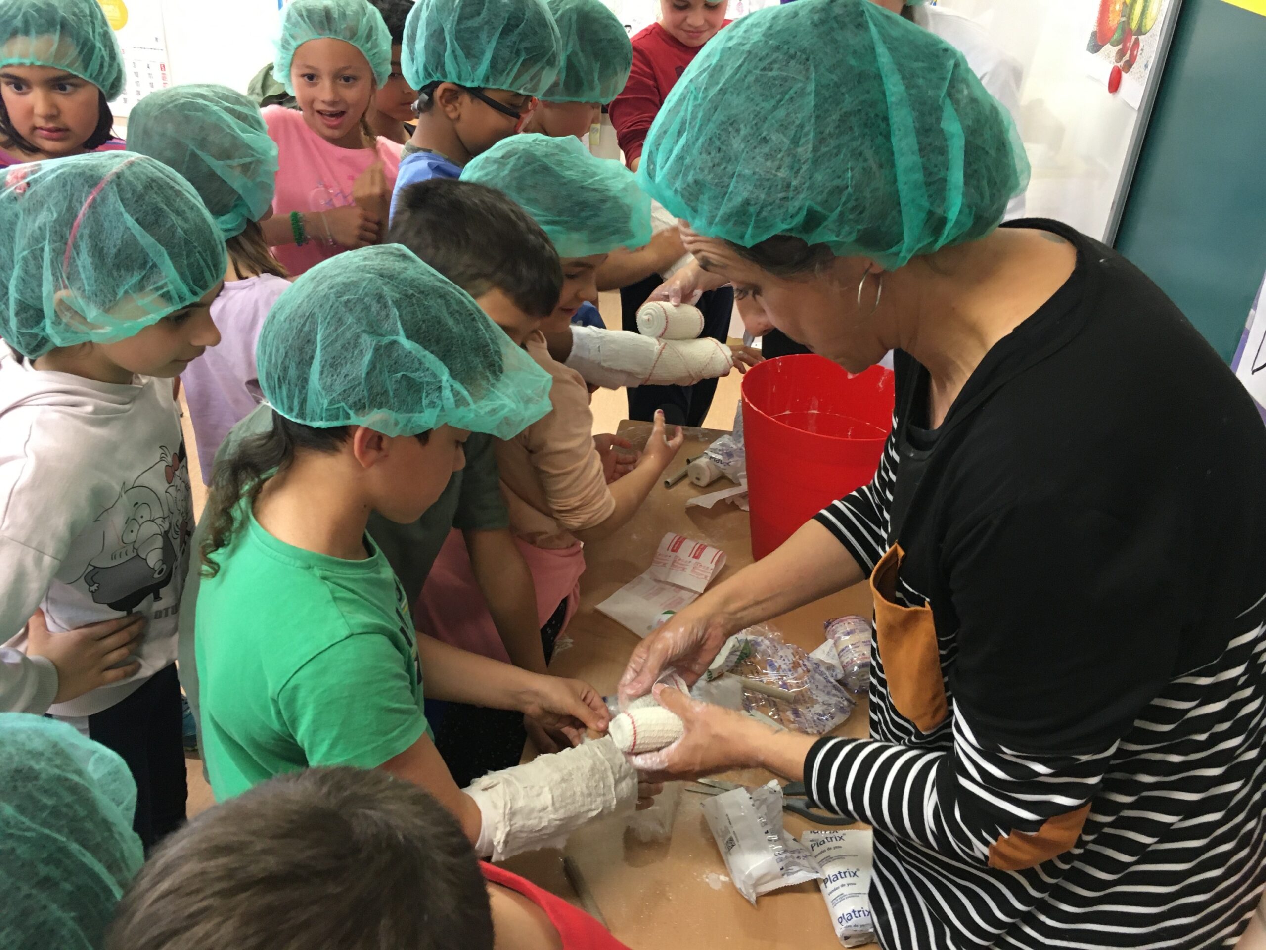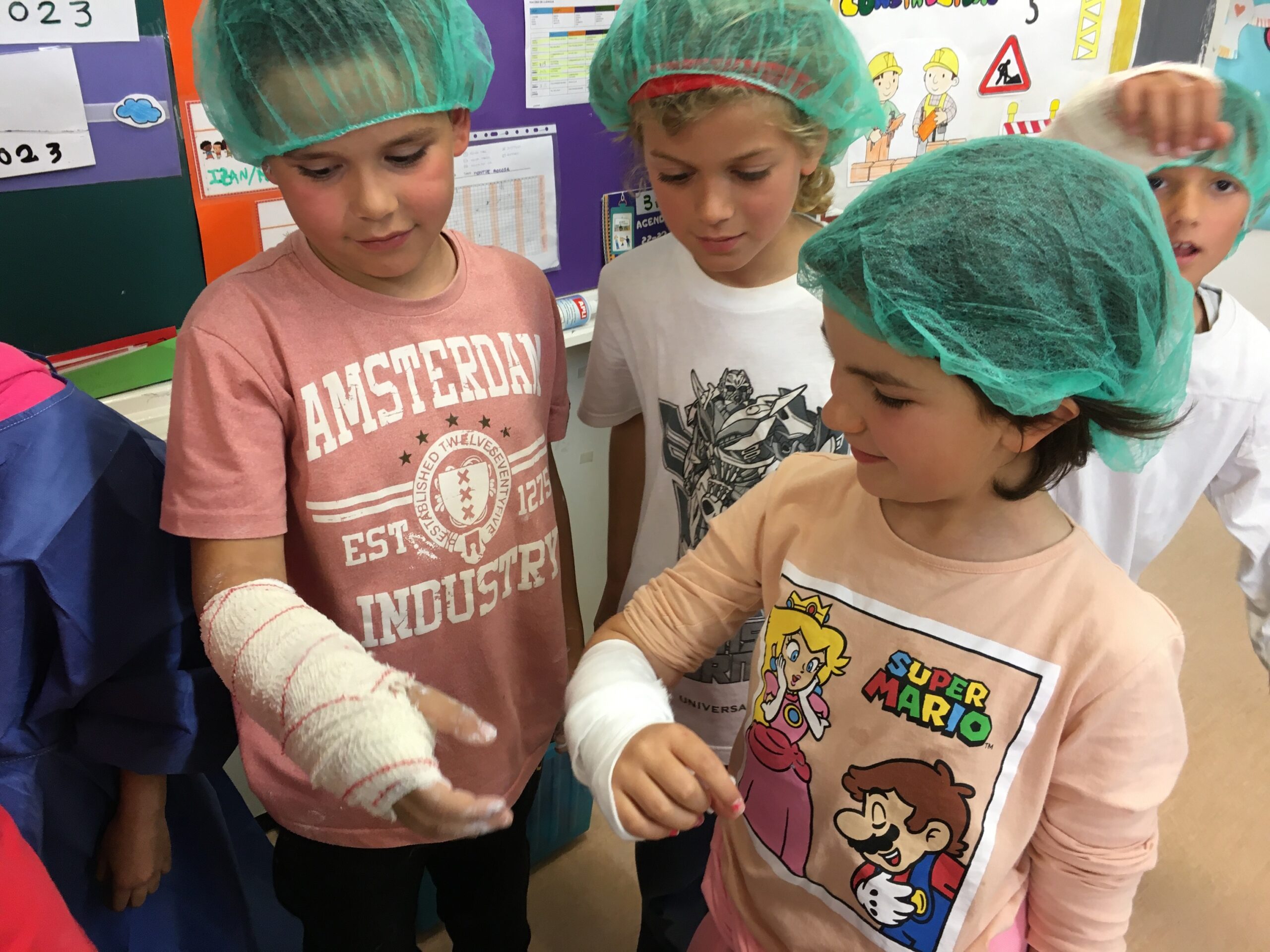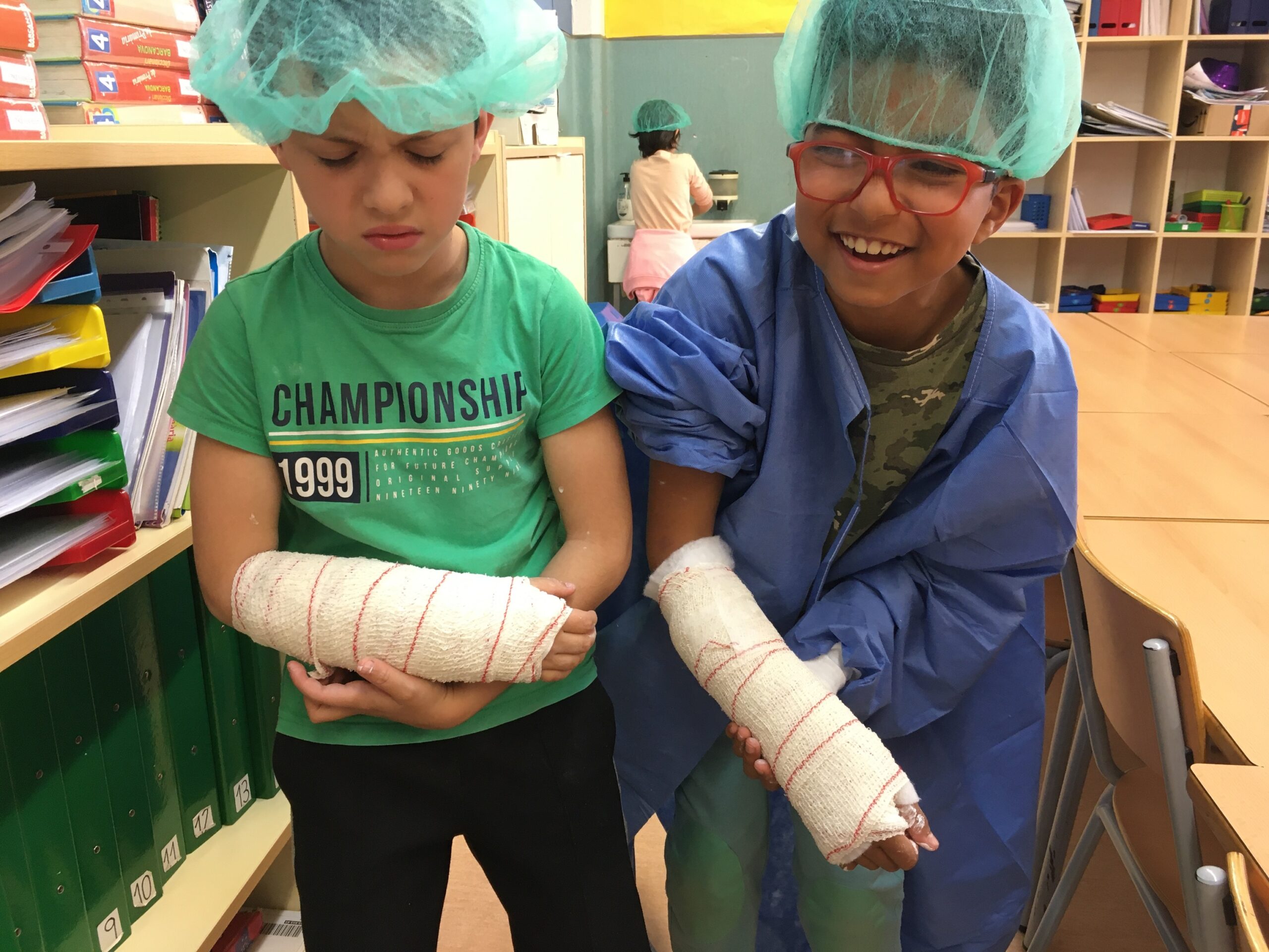 Ens visiten les infermeres Sara i Lídia, per explicar-nos coses dels servei de salut del que gaudim els ciutadants. Ho hem comparat amb un país pobre com la Índia. Hem fet de metges, infermeres i pacients. Ha estat molt divertit! Moltes gràcies per venir!