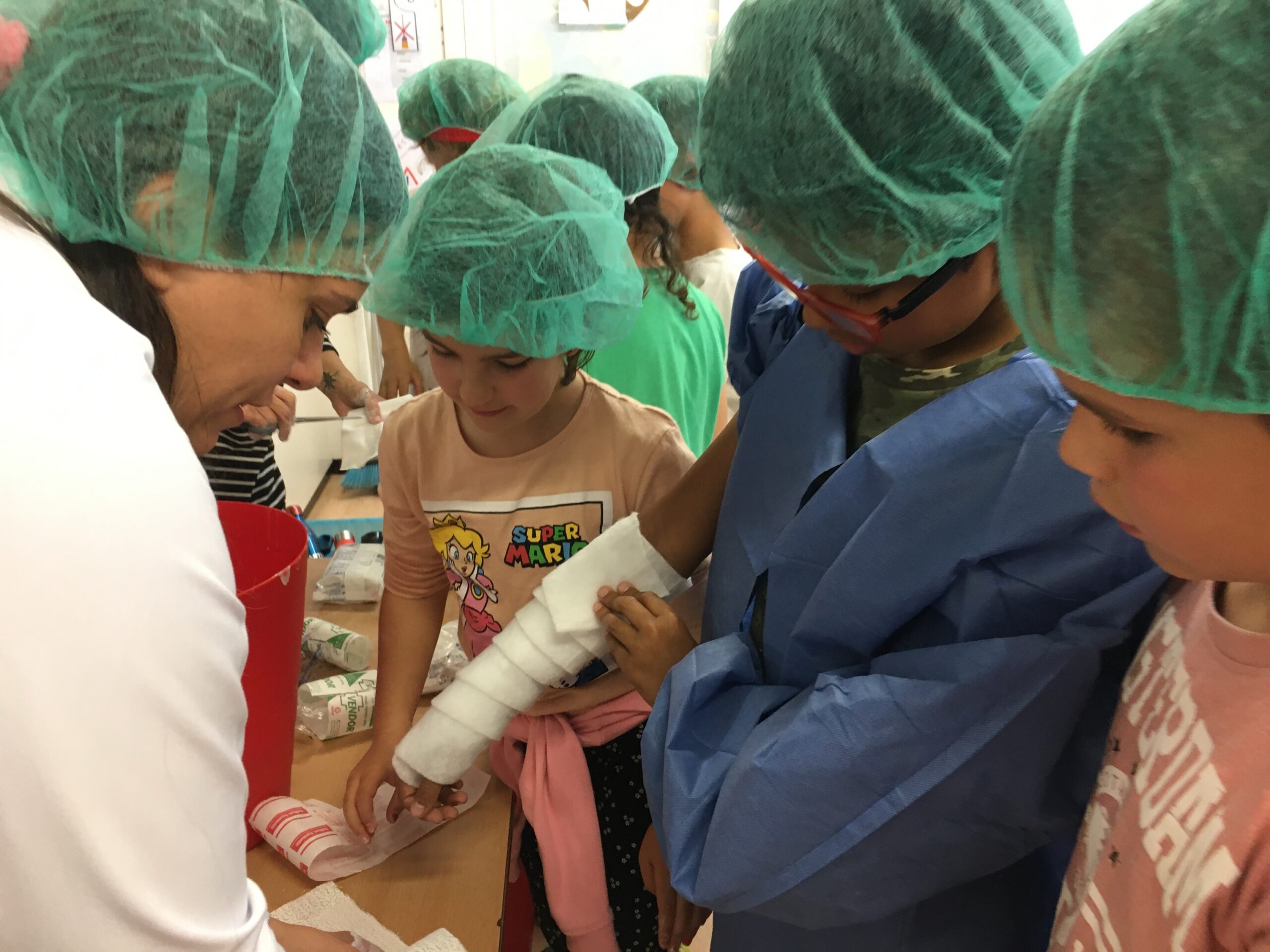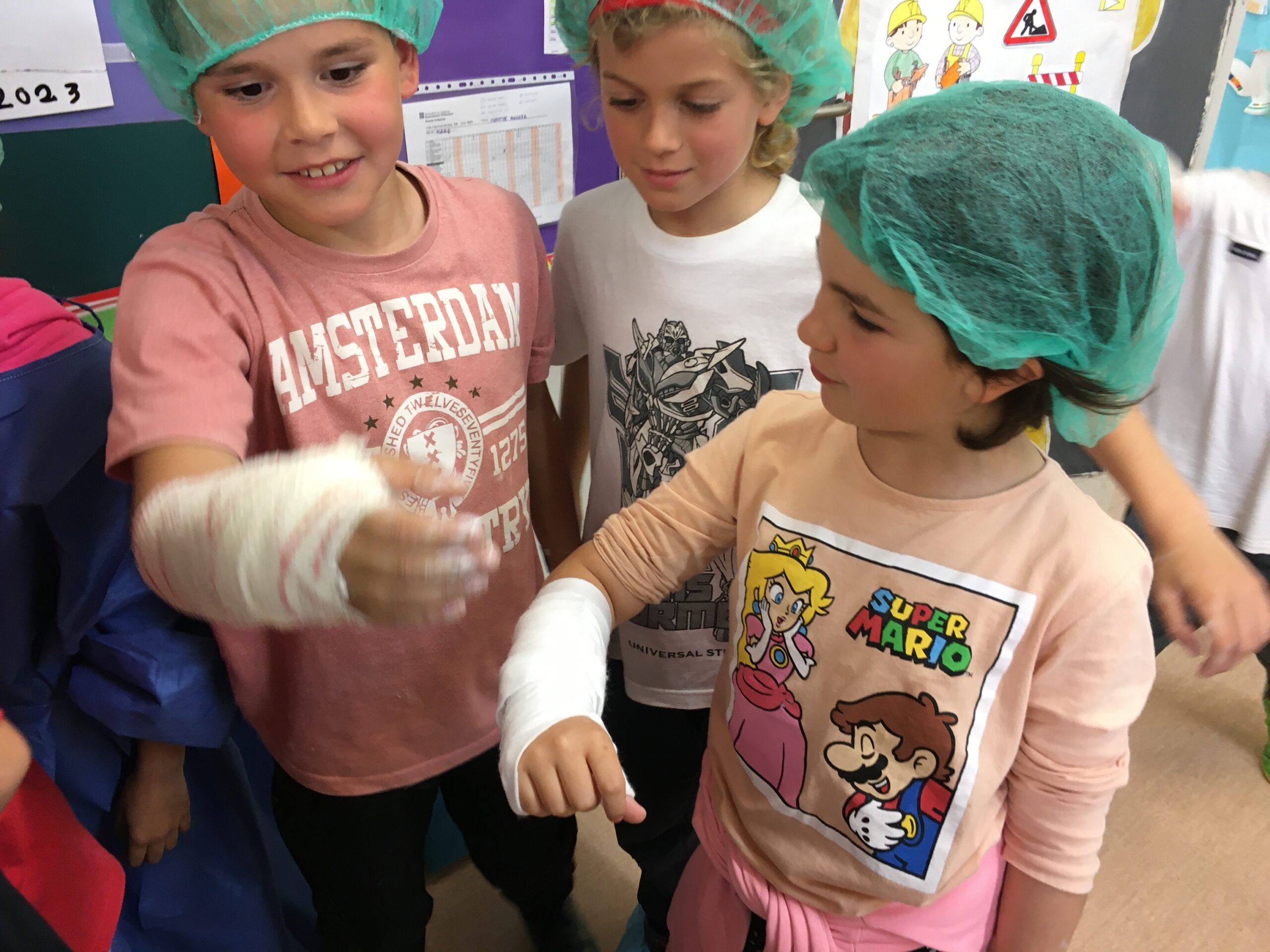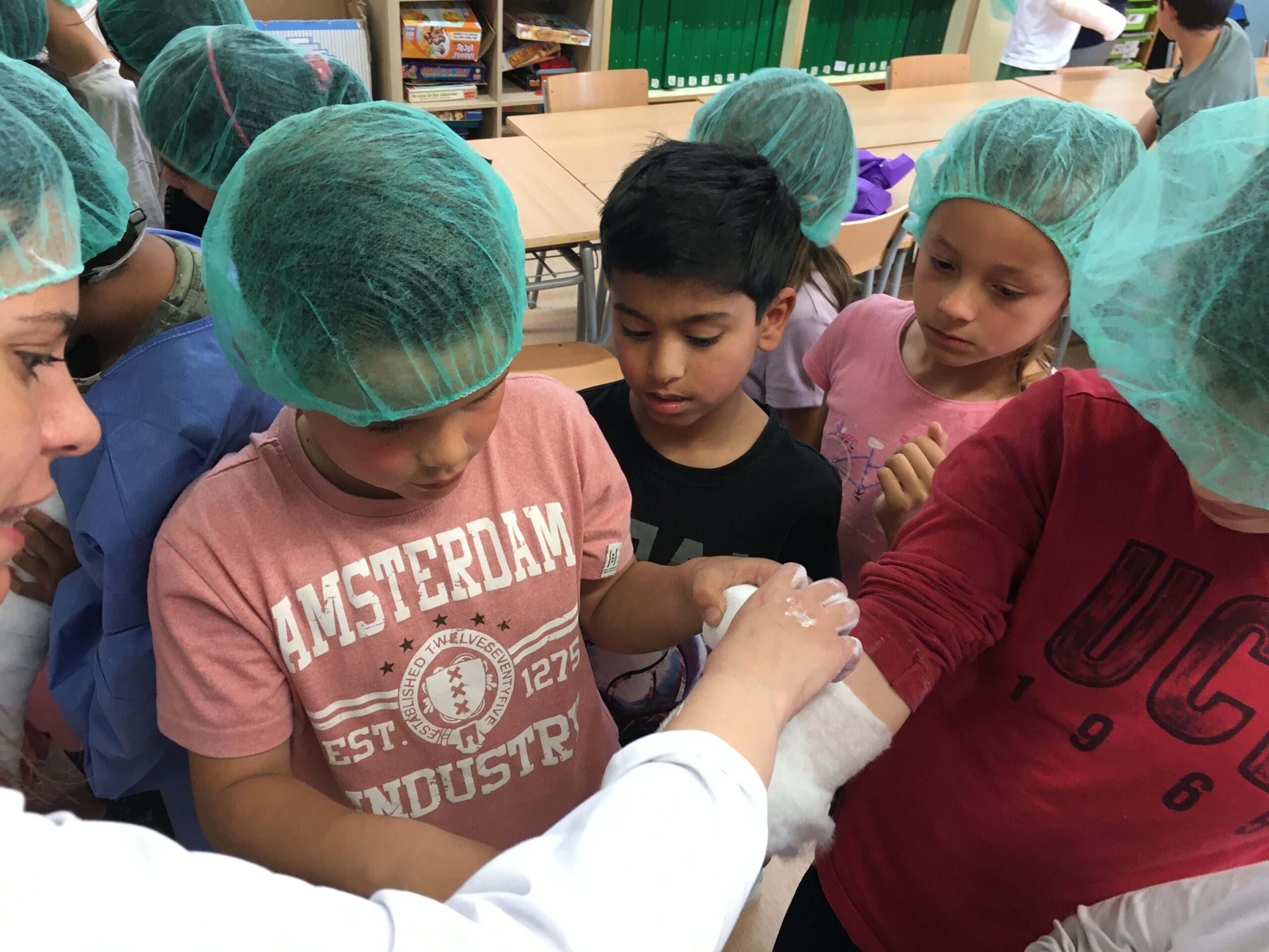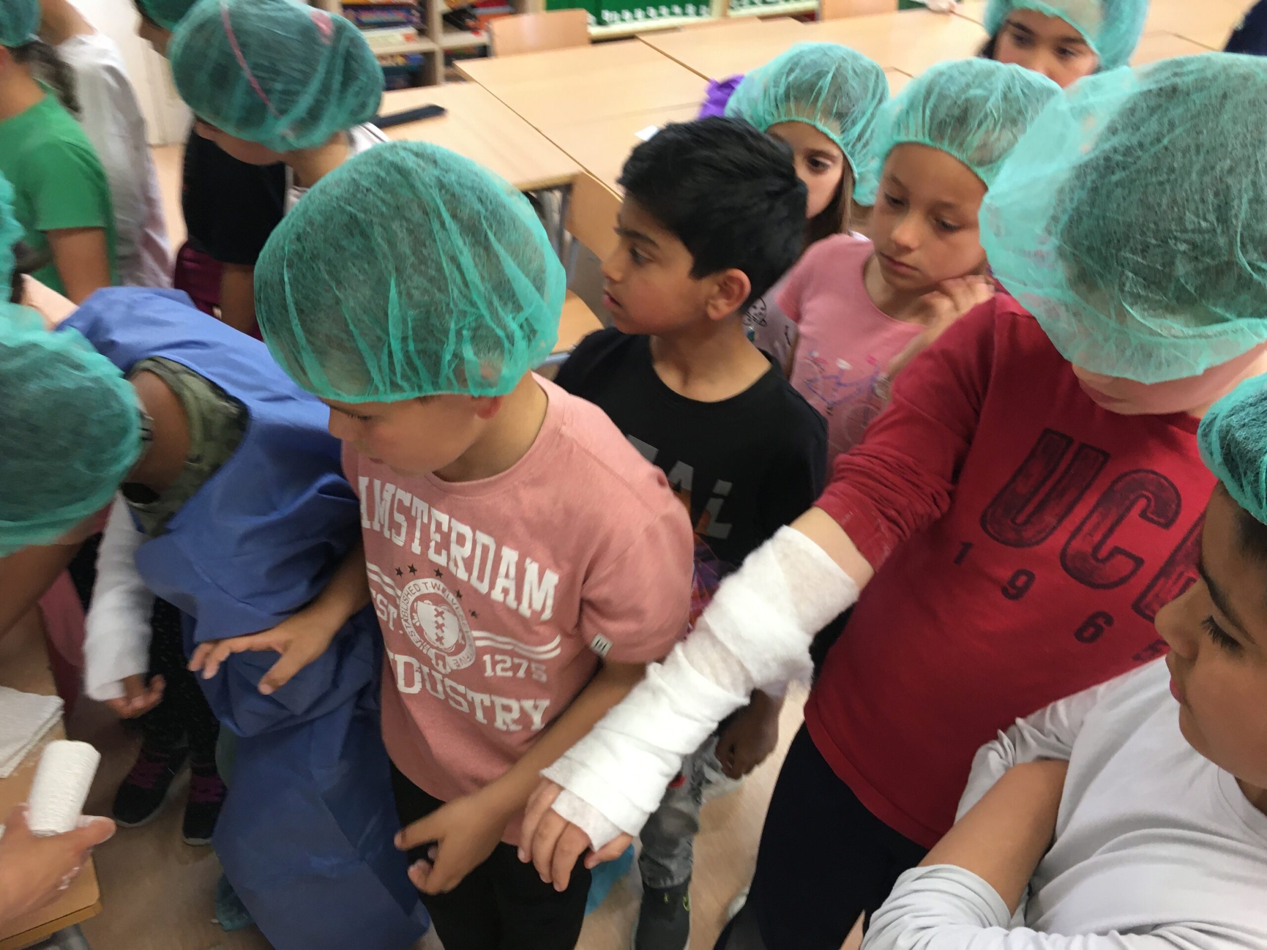 Ens visiten les infermeres Sara i Lídia, per explicar-nos coses dels servei de salut del que gaudim els ciutadants. Ho hem comparat amb un país pobre com la Índia. Hem fet de metges, infermeres i pacients. Ha estat molt divertit! Moltes gràcies per venir!