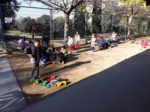 Als TAURONS a l’hora del pati és un dels moments que més ens agrada. Gaudim molt amb les bicis i les motos, però,també, amb la sorra,experimentem amb material nou que hem afegit aquest curs com els embuts, coladors, tubs, les galledes i les pales, tamisos, vols, pots diversos,etc,.. i, també amb els camions i les excavadores. Amb les fustes construïm circuits, seients, etc,..I.amb els guixos practiquem el dibuixar.