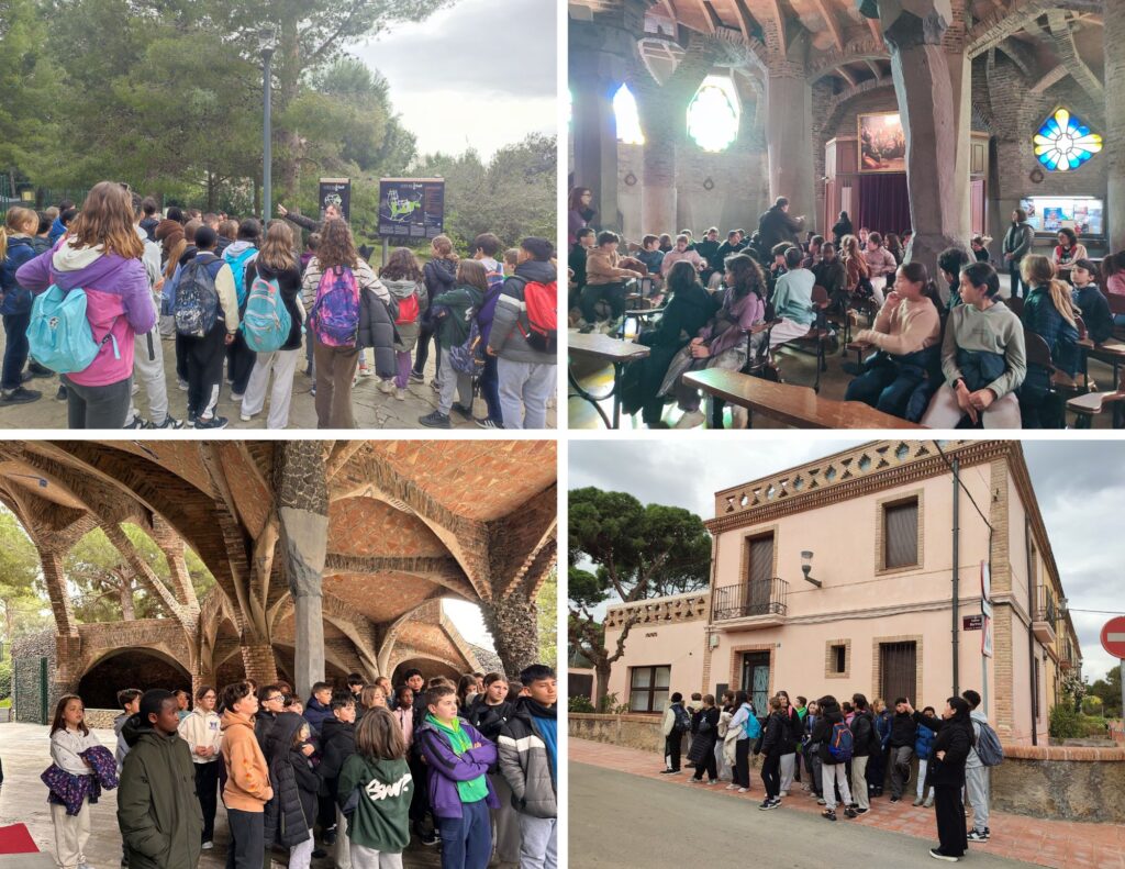 L’alumnat de cinquè i sisè de primària ha realitzat la sortida cultural a la Colònia Güell, situada a Santa Coloma de Cervelló. Durant la visita, els nens i nenes han pogut conèixer de primera mà com era una colònia industrial de finals del segle XIX i principis del XX, on els treballadors/es i les seves famílies vivien a prop de la fàbrica.