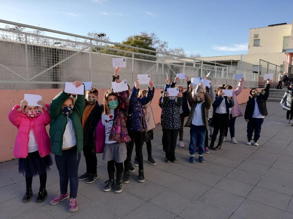 El dimecres 16 de desembre a la tarda, vam anar a la bústia que hi ha a la plaça de la Llibertat a tirar la postal que ens fet per desitjar-nos bones festes. Cadascú de nosaltres n’ha fet una per a un company o companya de classe i a alguns ja ens ha arribat.