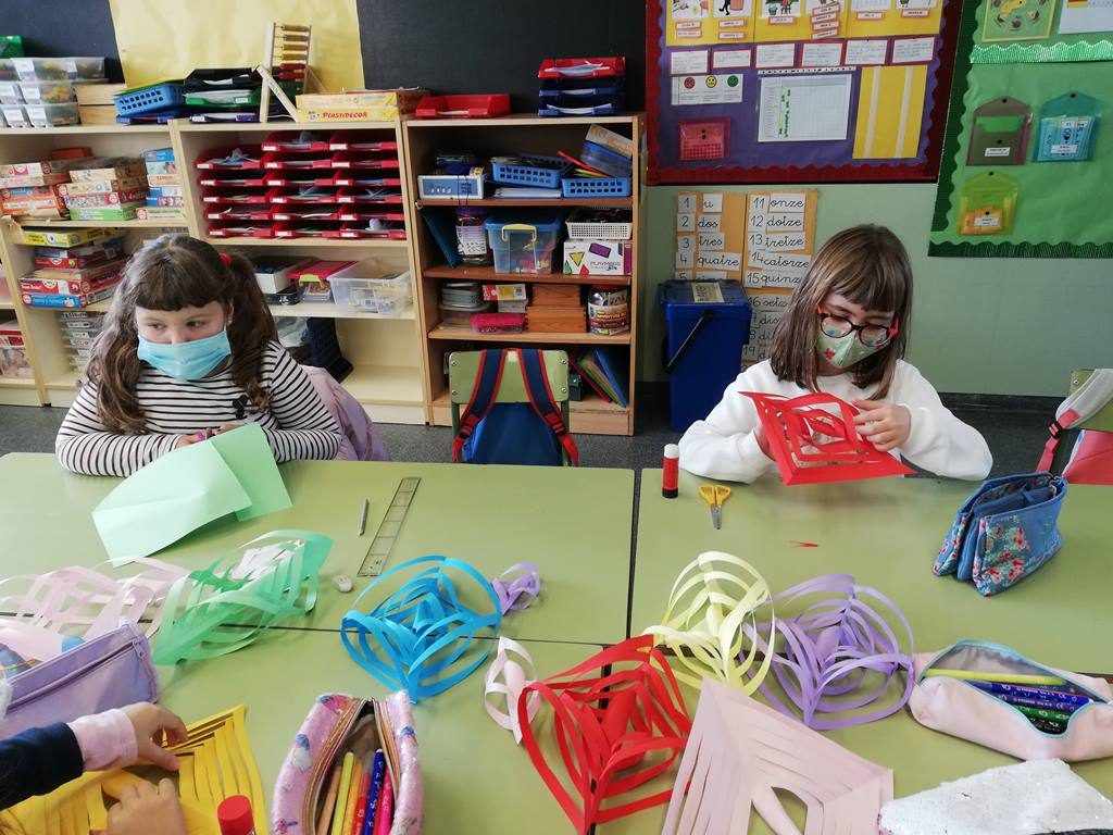 Hem fet un joc amb llanternes que ens ha ajudat a entendre millor el significat de: «volcà actiu», «volcà adormit» i «volca extint». La llum de la llanterna simulava l’explosiu del volcà. Hem fet parelles, unes havien de pensar quin tipus de volcà volien representar i unes altres ho havien d’endevinar.