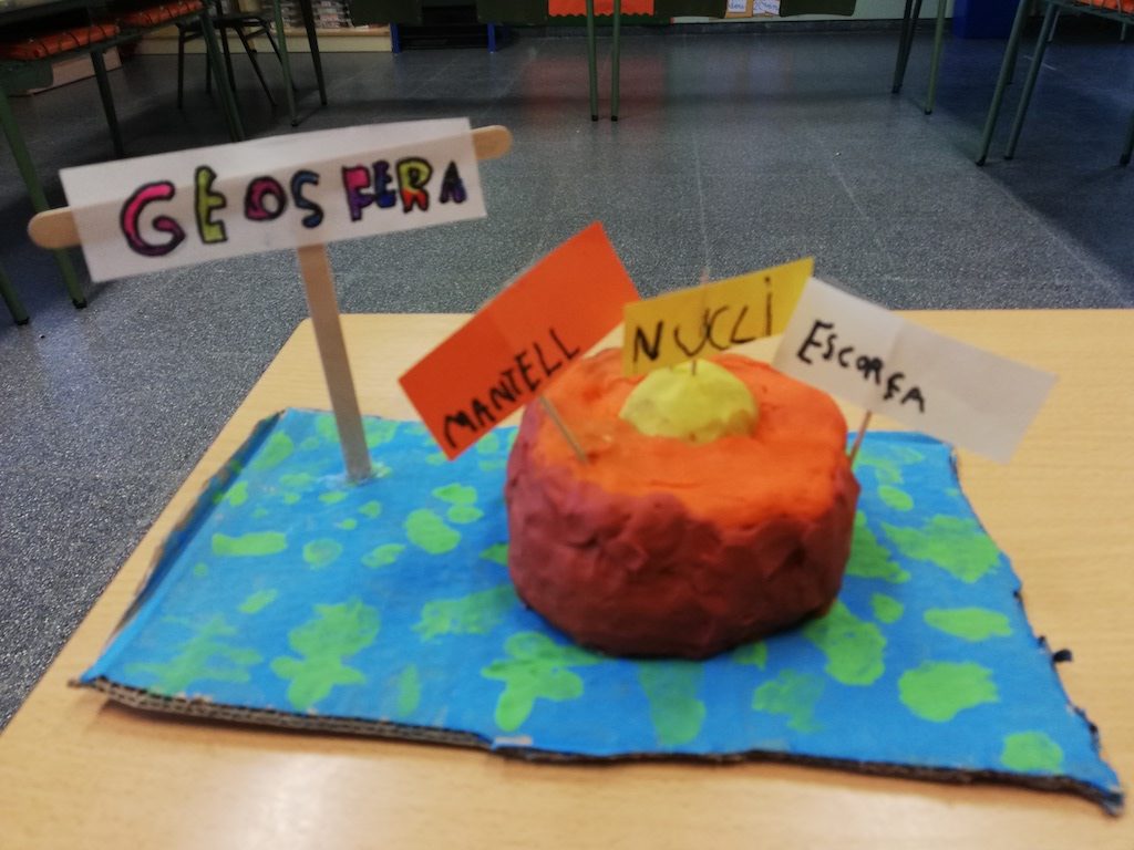 Hem construït la part sòlida de la Terra, la geosfera, amb diferents materials i amb el cos. També hem simulat com les plaques tectòniques llisquen sobre el mantell.