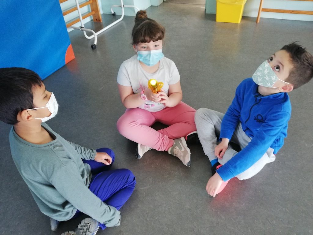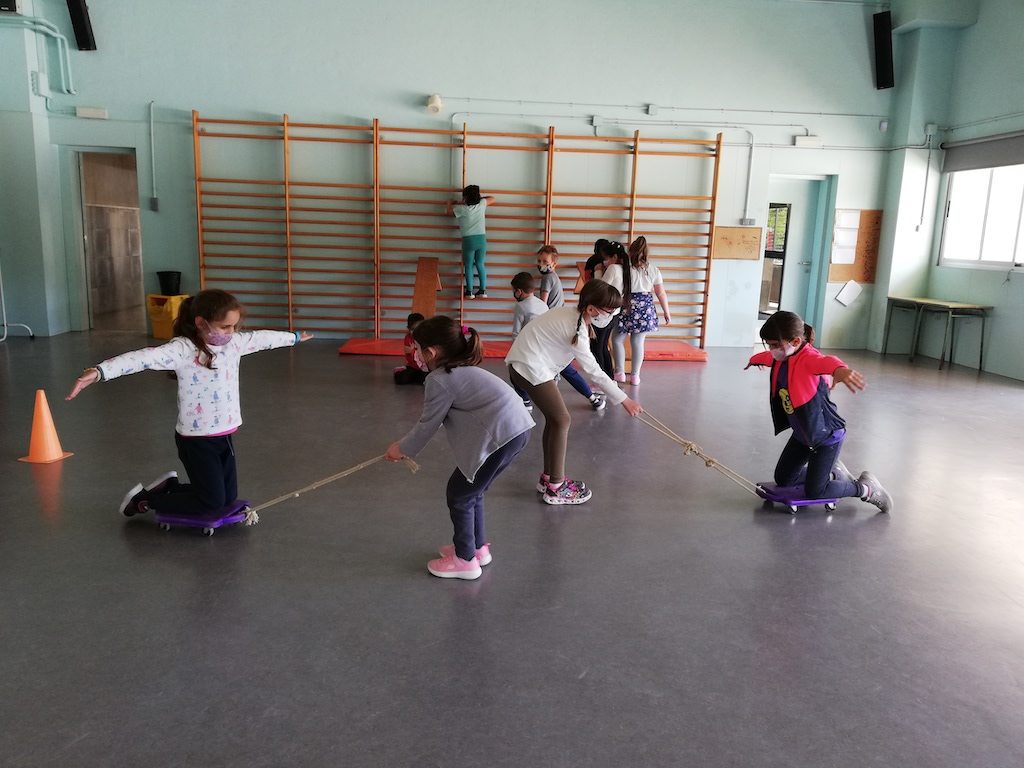 Estem treballant l’equilibri i els girs. Fem activitats molt divertides en els espais de joc que muntem. Podem decidir quin volem fer i anar canviant quan vulguem, però és molt important respectar el torn i el material. També hem d’intentar provar tots els espais, els que més ens agraden i els que més ens costen, per així anar superant les pors i els reptes.