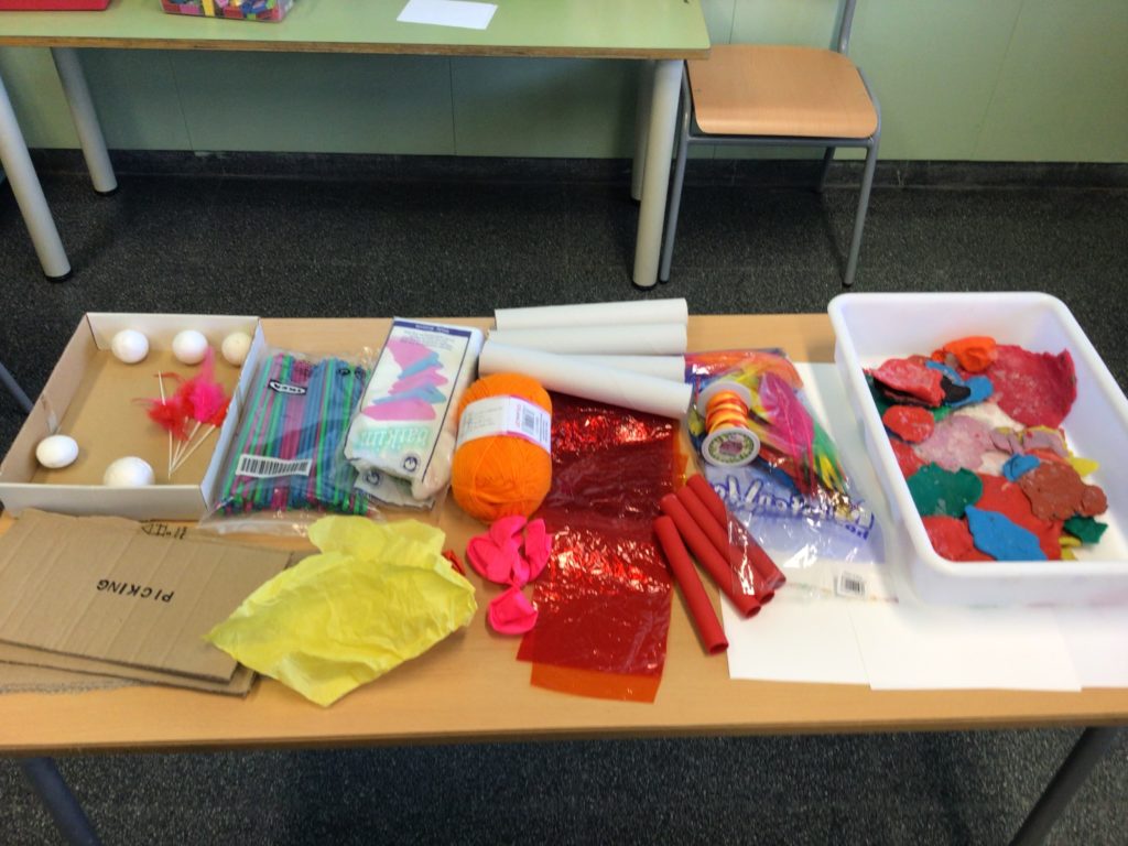 Amb el material que ens han donat hem hagut de decidir com fer cadascuna de les parts del volcà, després hem posat els rètols i per últim ho hem explicat als altres grups.