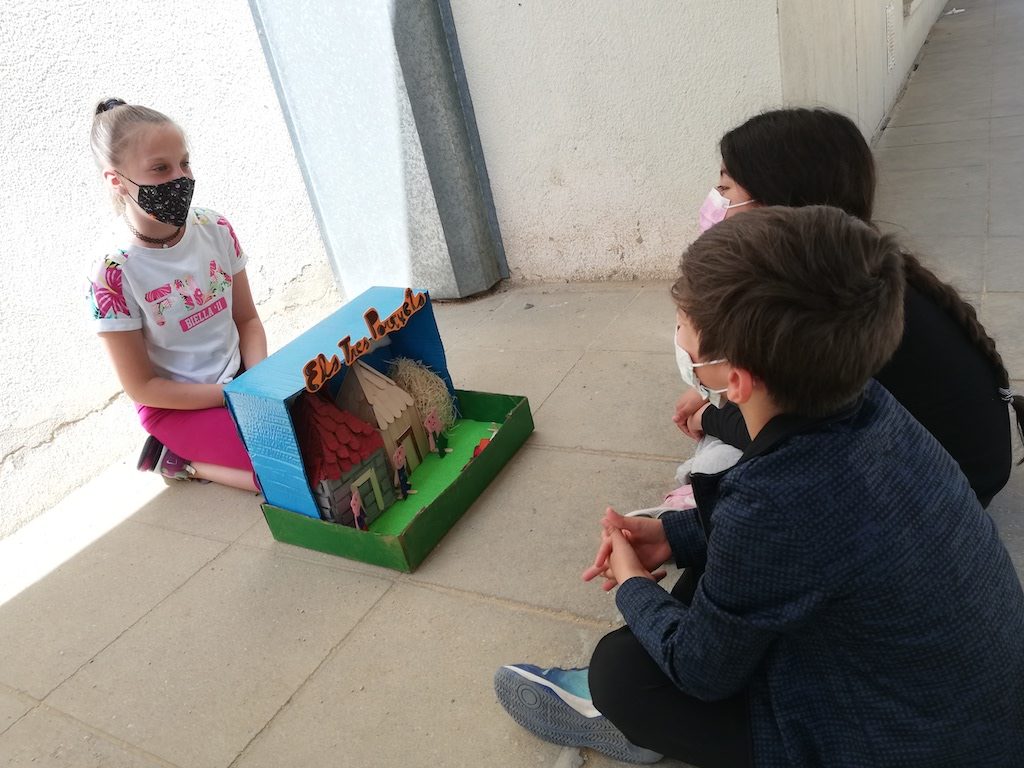 Malgrat la calor i les mesures de seguretat pel còvid, hem gaudit de les seves històries i hem vist les maquetes que han preparat a casa per explicar els contes.