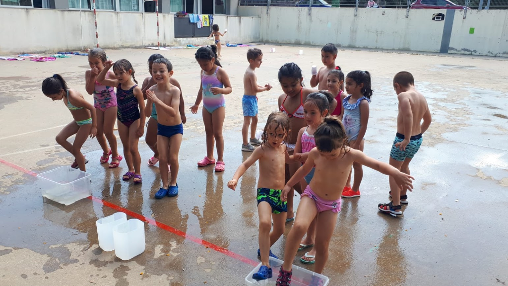 DESPRÈS AL PATI I PER EQUIPS, EL JOC DE LA BOMBA AMB GLOBUS, ESPONGES AL CAP  I GOTS FORADATS ENS VÀREM PASSAR. TAMBÉ VAM FER DIANA AMB EL XURRO D’AIGUA I  UNA AMPOLLA AMB REXINGUES ENTRE TOTS I MOLTA PACIÈNCIA  VAM HAVER D’OMPLIR!