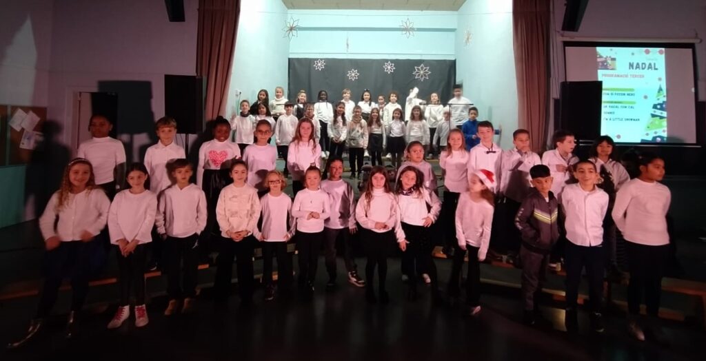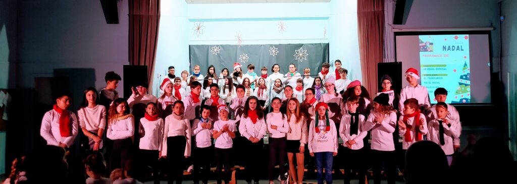Aquest curs hem recuperat el format de sempre en el nostre festival de Nadal. Ha estat molt emocionant omplir de nou la sala d’actes amb famílies, infants i mestres i compartir els moments entranyables que sempre ens porta aquest festival.