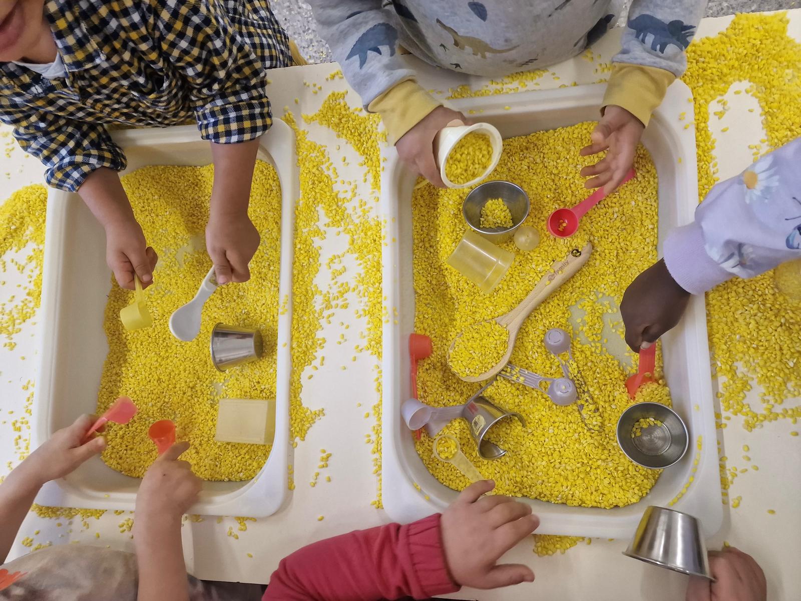 Fa unes setmanes els infants d’I3 hem estat treballant el color GROC. Hem jugat a buscar objectes de l’aula de color groc. També hem classificat les joguines grogues. Hem gaudit tenyint arròs i experimentant. I hem treballat la motricitat fina desgranant panotxes de blat.… Llegeix més»