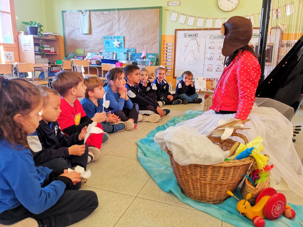 El passat divendres, 5 de desembre, vam tenir la visita de la nostra veïna de partida, la Berta Puigdemassa amb la seva fabulosa arpa. Amb els seus ritmes ens ha fet gaudir d’una tarda plena de sons i d’històries relacionades amb el nostre projecte del MAR. Primer amb els infants de l’aula 2 amb la