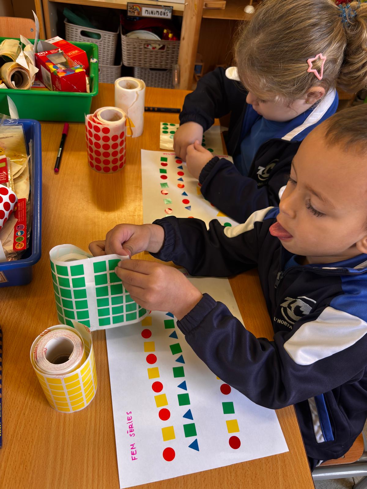 A l’aula 1, estem treballant les sèries de colors i formes. A través d’aquestes activitats, els infants observen, anticipen i prenen decisions. Tot això forma part del pensament computacional, una manera de pensar que ajuda a resoldre problemes amb lògica i creativitat.