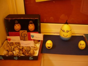 Algunos alumnos se dedicaron a dibujar y crear escenas con huevos pintados a mano y ahora se ha convertido en casi una tendencia. Estas divertidas fotografías de huevos son creadas gracias a expresiones dibujadas en huevos para contar una historia. No se necesita ser un artista profesional para crear una de estas escenas. Un ejemplo de que  la creatividad se puede demostrar en muchas formas; pintura, escultura, ilustración, animacion… etc, pero también se puede demostrar con huevos. Si quieres imitarnos, solo necesitas unos cuantos huevos, un marcador y una cámara.
