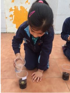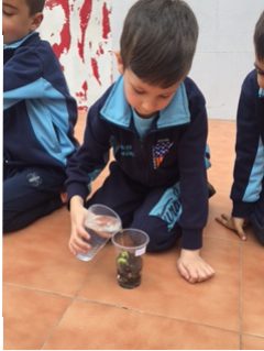 A partir d’aquí, vam pensar què és el que necessiten les plantes per poder viure. Després vam estar pensant com ho feien per creixer. D’aquesta manera doncs, cada alumne va plantar les seves mongetes màgiques i cadascú es va responsabilitzar de les necessitats de les seves plantes per a què puguin creixer i arribar fins al castell del Jack.