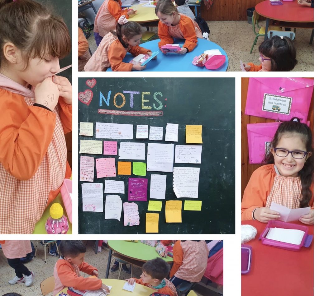 Per treballar l’escriptura de notes, les famílies de primer van col·laborar amb l’escola escrivint una nota sorpresa dins de la carmanyola de l’esmorzar dels nens i nenes sense que ells ho sabessin. Així que a l’hora de l’esmorzar quan els nens van obrir la carmanyola, SORPRESA! Va ser un moment ple d’emoció 🙂