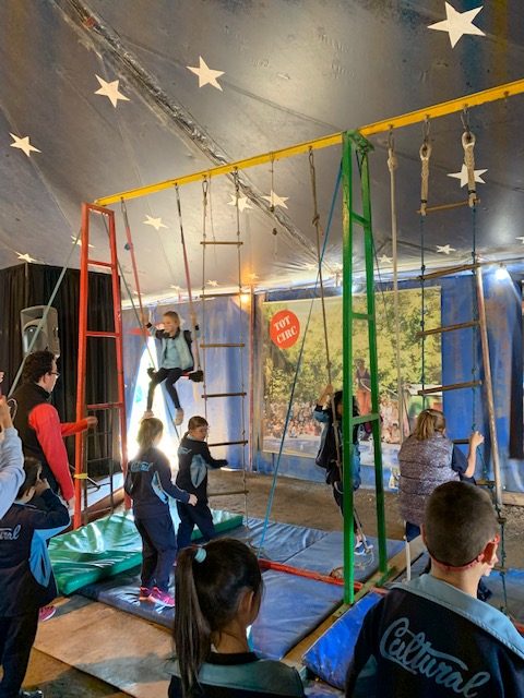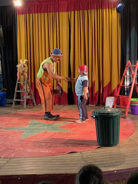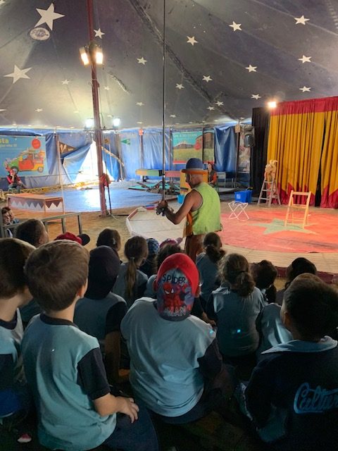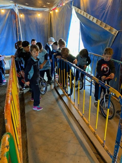 Vam poder gaudir d’un espectacle de malabarisme amb el pallasso del circ i posteriorment, practicar alguna de les diferents acrobàcies amb els monocicles, patins, etc.
