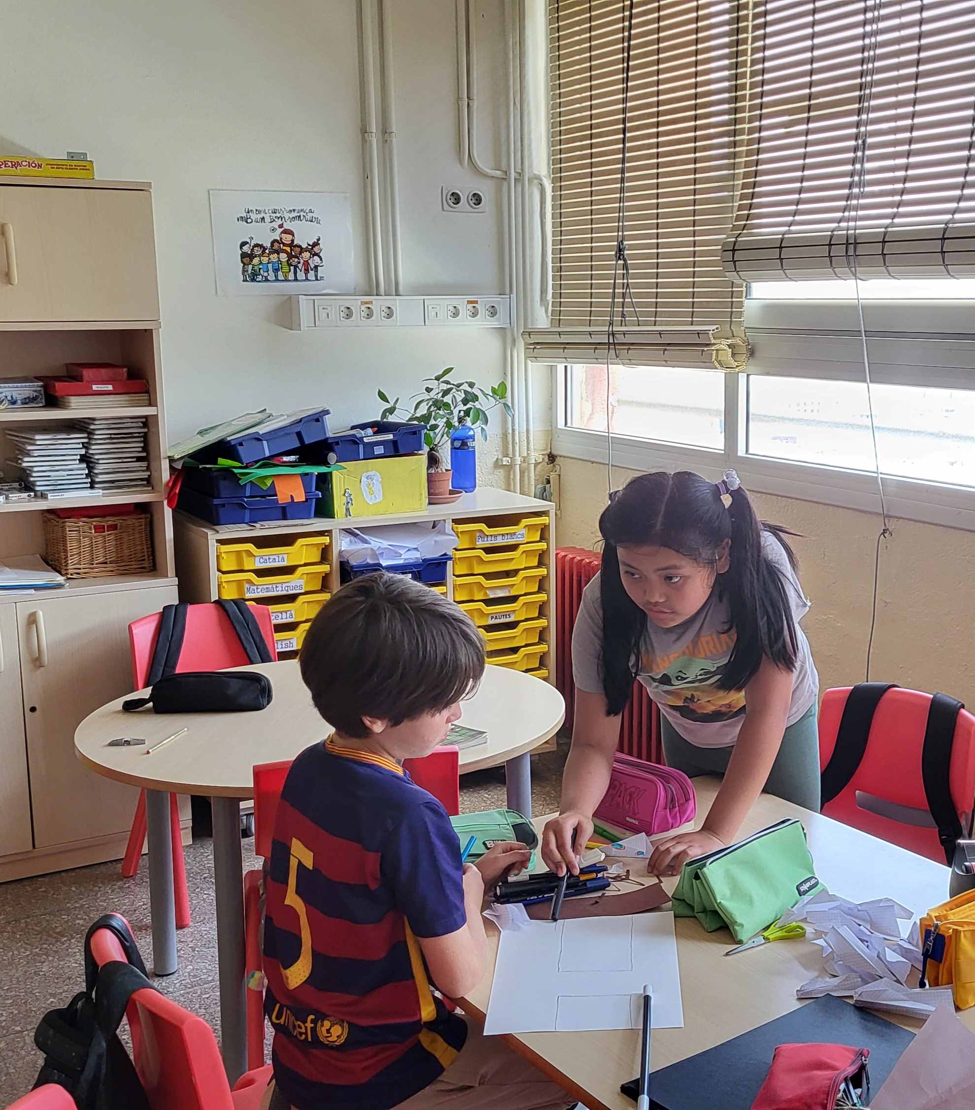 Aquest últim trimestre a castellà hem treballat l’obra de teatre. Aquesta experiència no només ajuda a desenvolupar habilitats teatrals, sinó també fomenta la col·laboració, la creativitat i la confiança en un mateix i en els altres. Treballar junts per crear i interpretar una obra de teatre pot ser molt gratificant i enriquidor, ja que implica compartir idees, resoldre problemes i unir esforços per aconseguir un objectiu comú. A més, els nens han après a valorar el treball en equip, a respectar les idees dels companys i a combinar talents diversos per crear una obra cohesiva. Fer l’atrezzo els ha permès explorar la seva creativitat manual i visual, mentre que l’assaig ha estat clau per millorar la seva expressió oral i corporal.