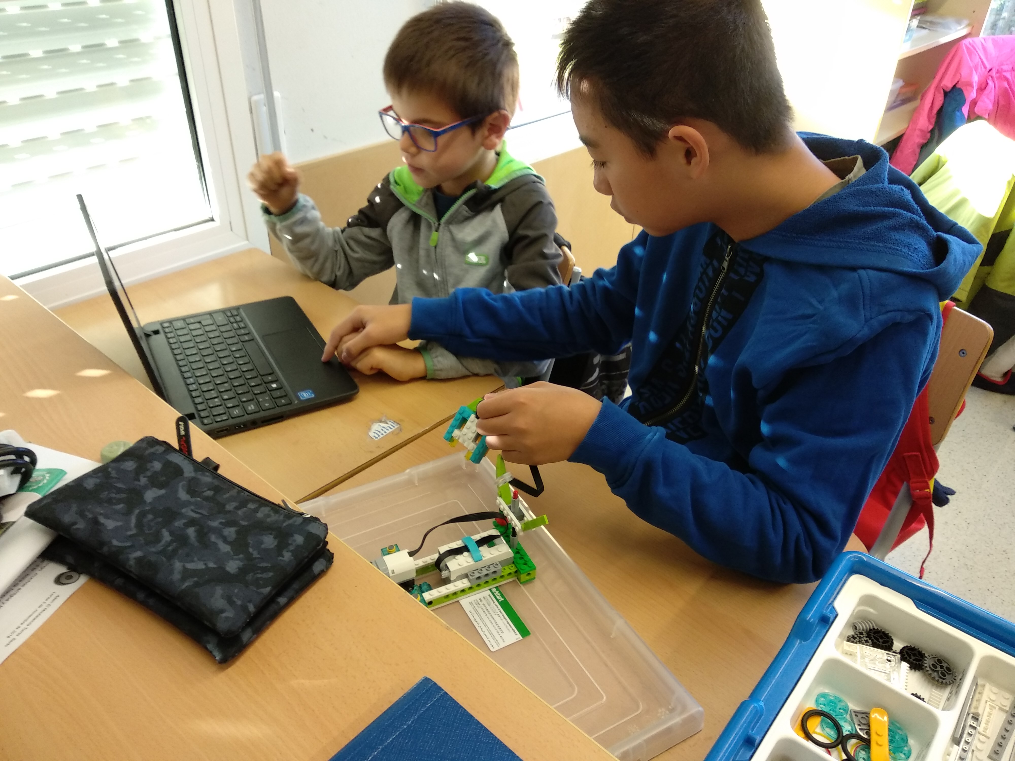Després d’unes sessions prèvies, avui els alumnes de primer han fet la primera sessió de robòtica pròpiament dita.