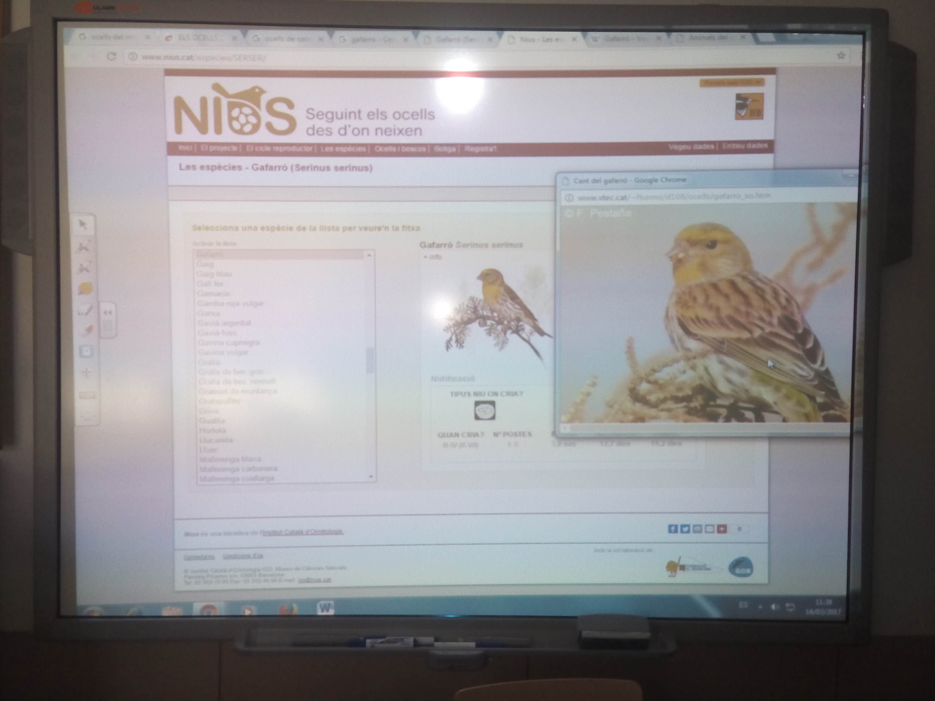 Ara formem part del projecte nius.cat, hem posat 4 caixes niu al pati de l’escola. Les vam posar els arbres més grans, a 5 metres de terra i amb la porta per entrar i sortir a contravent per facilitar que les ocupin els ocells.