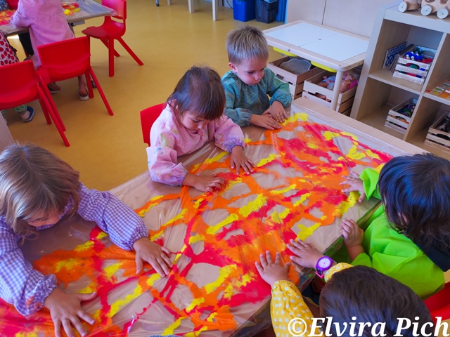 Els nens i nenes del grup dels petits de l’escola vam fer una activitat de Plàstica dels colors de la tardor, ens ho vam passar molt bé barrejant la pintura que hi havia atrapada al mig dels plàstics, alo final ens va quedar una obra fantàstica.