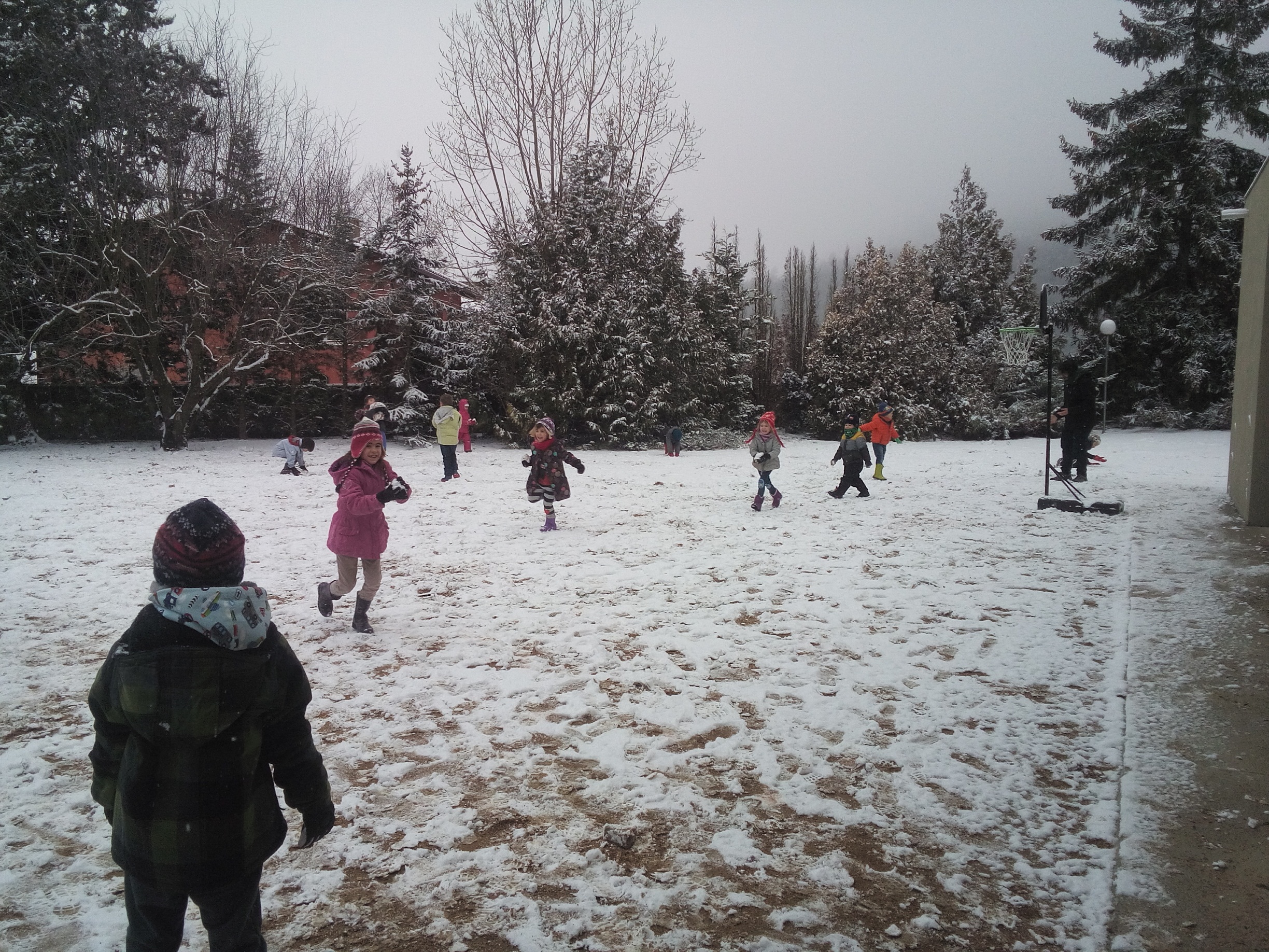 Després hem fet una hora de classe i a l’hora del pati hem tornat a jugar amb la neu. I ens hem tirat boles de neu, sobretot als mestres! També hem fet unes boles gegants que no les podíem aixecar.