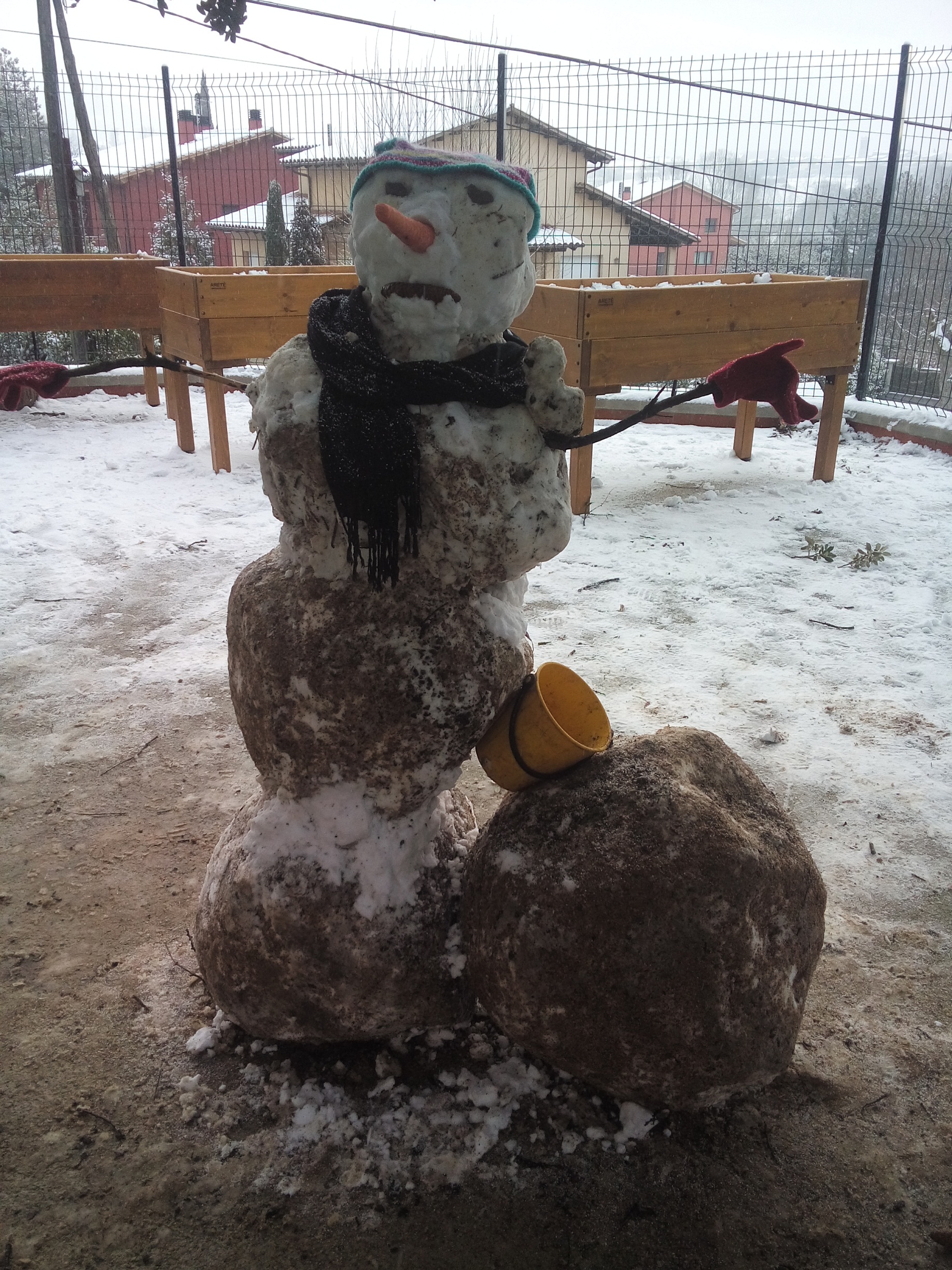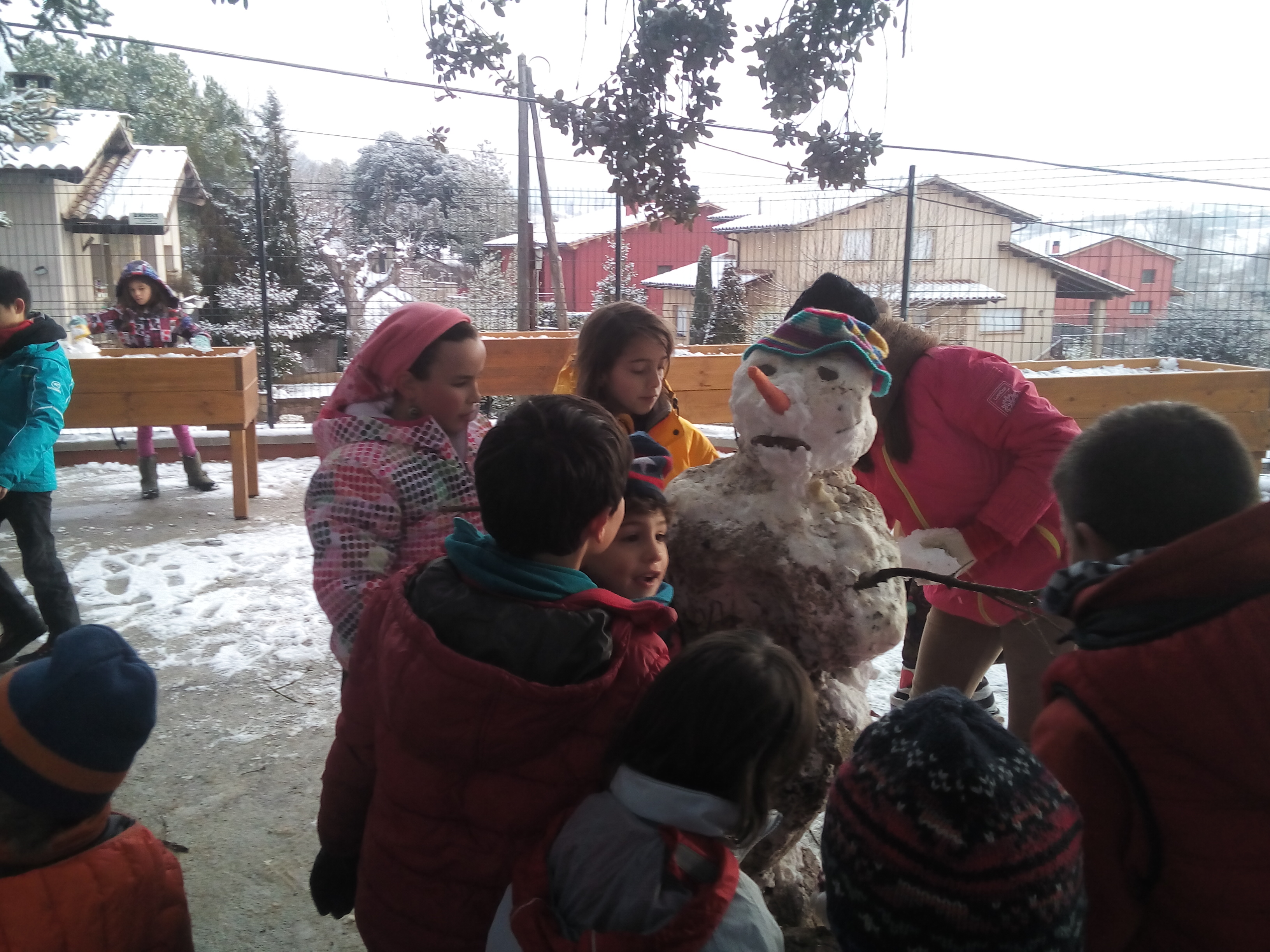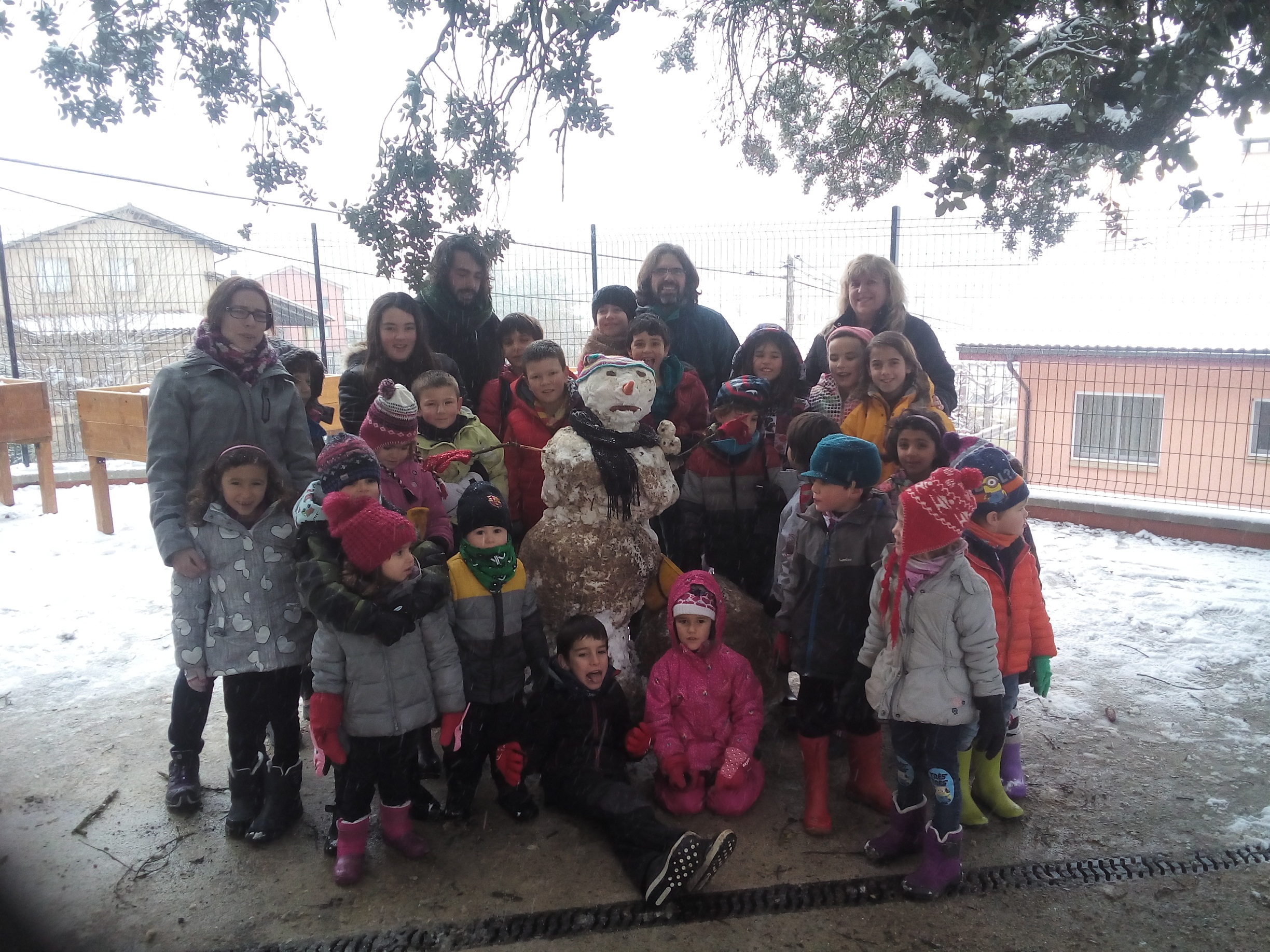 Avui dijous 26 de gener del 2017 ha nevat molt. És el primer cop que podem jugar amb la neu a l’edifici nou de l’escola. Quan hem arribat hem fet un ninot de neu entre tots els nens i nenes de l’escola, que ens ha quedat inclinat com la Torre de Pisa (el nom de la nostra classe) i ens hem fet una foto tots junts.