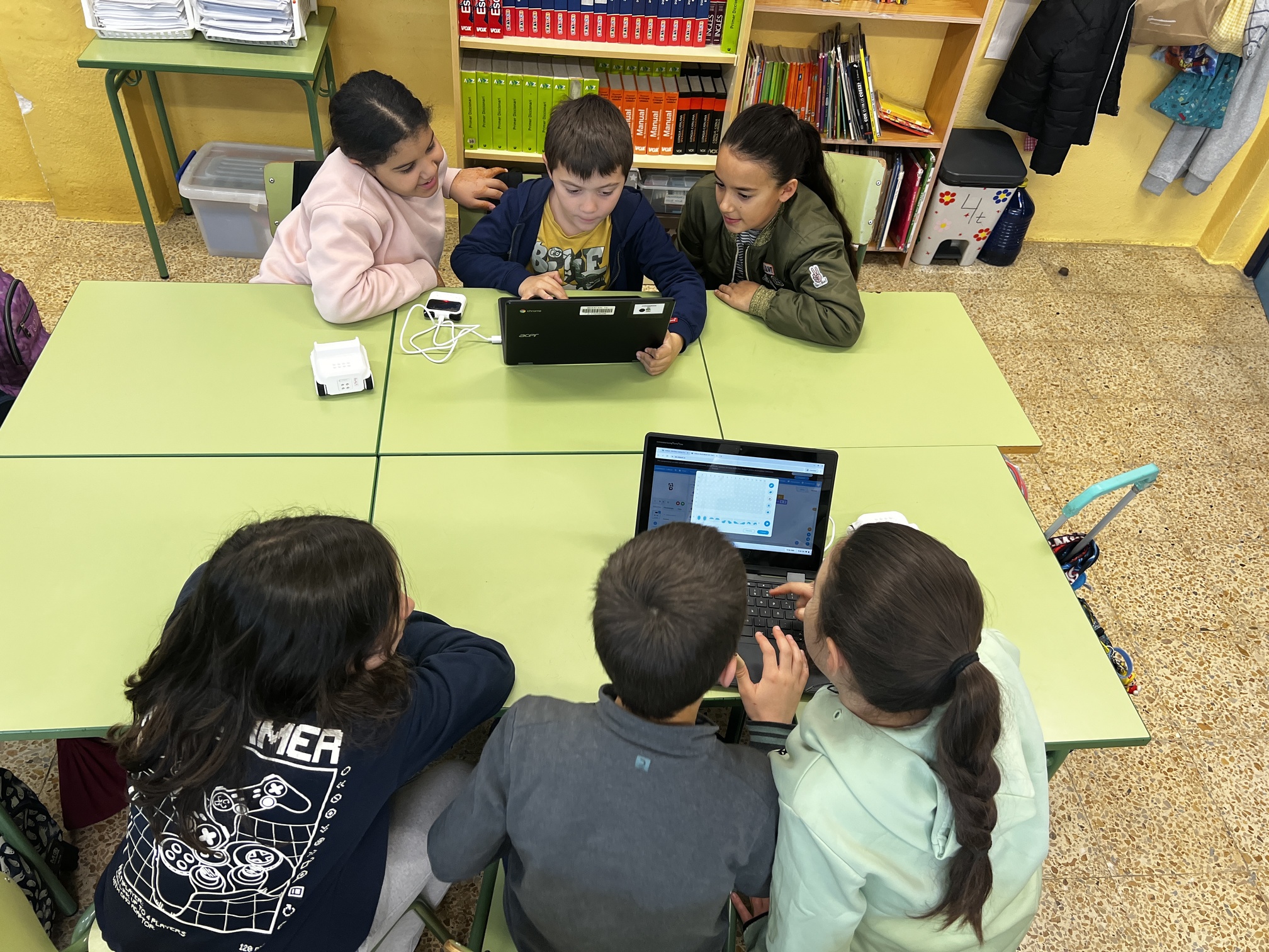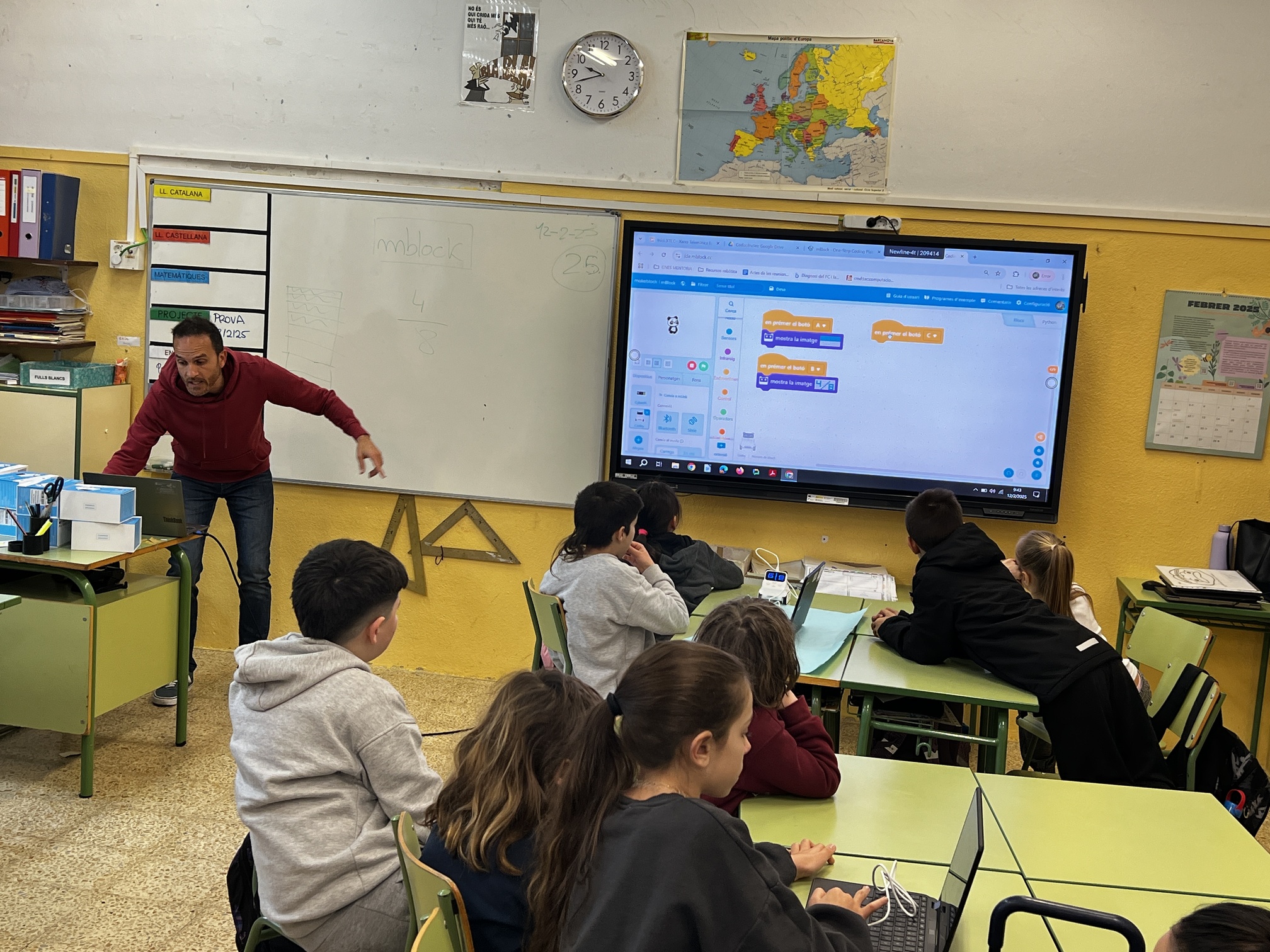 Robòtica aplicada a les matemàtiquesPer Admin / 14 de febrer de 2025 / 4t Escola Primària Els i les alumnes de 4t hem fet un taller de robòtica on hem pogut treballar les fraccions matemàtiques utilitzant el robot Codey Rocky.