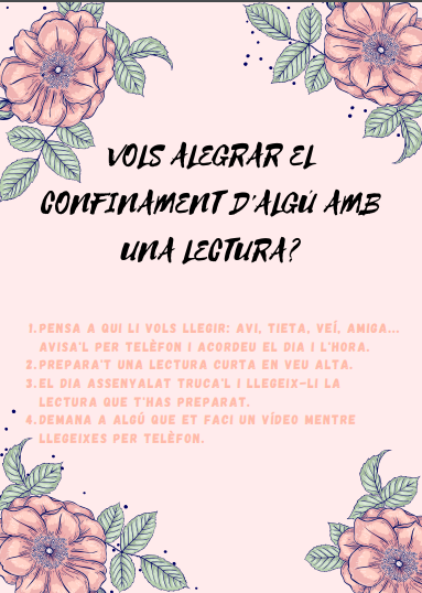 Avui us proposem una activitat de lectura en català. Observeu el pòster que us adjuntem a continuació: