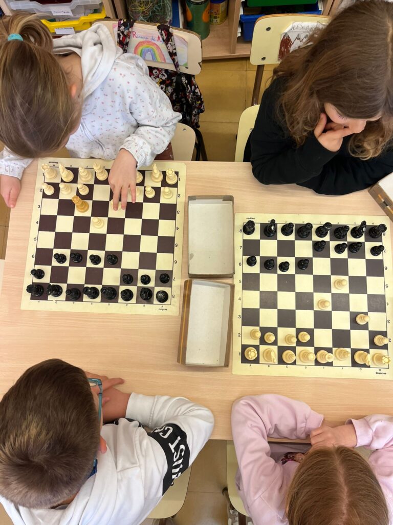 Els nens i nenes d’Angèlica, com altres grups de l’escola, hem fet la primera sessió del curset d’escacs amb l’Enric.