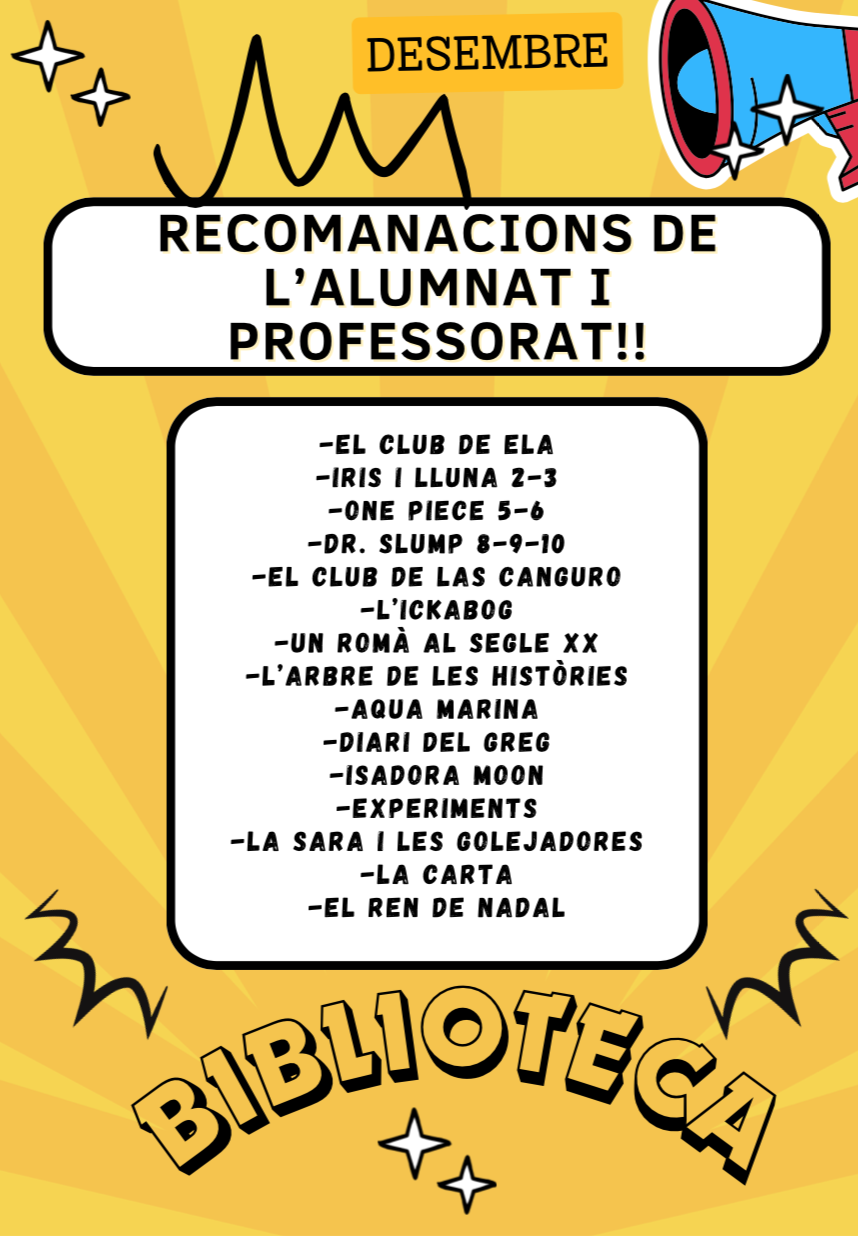 I aquest mes us recomanem…! Feu un comentari / Per admin / 11 de desembre de 2025 / Alumnes Biblioteca Curs 2025-2026 General Portada / 2025-2026, biblioteca, desembre, llibres recomanats