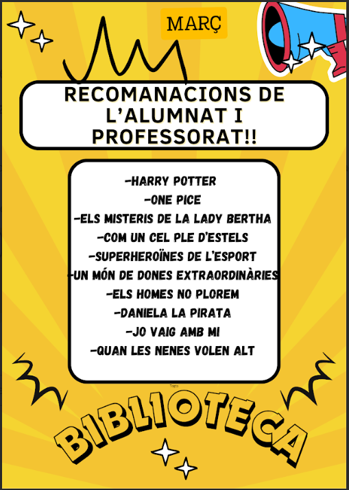 Lectures recomanades Feu un comentari / Per admin / 4 de març de 2026 / Alumnes Biblioteca Curs 2025-2026 General Portada / 2025-2026, biblioteca, març Aquest mes de març us proposem: