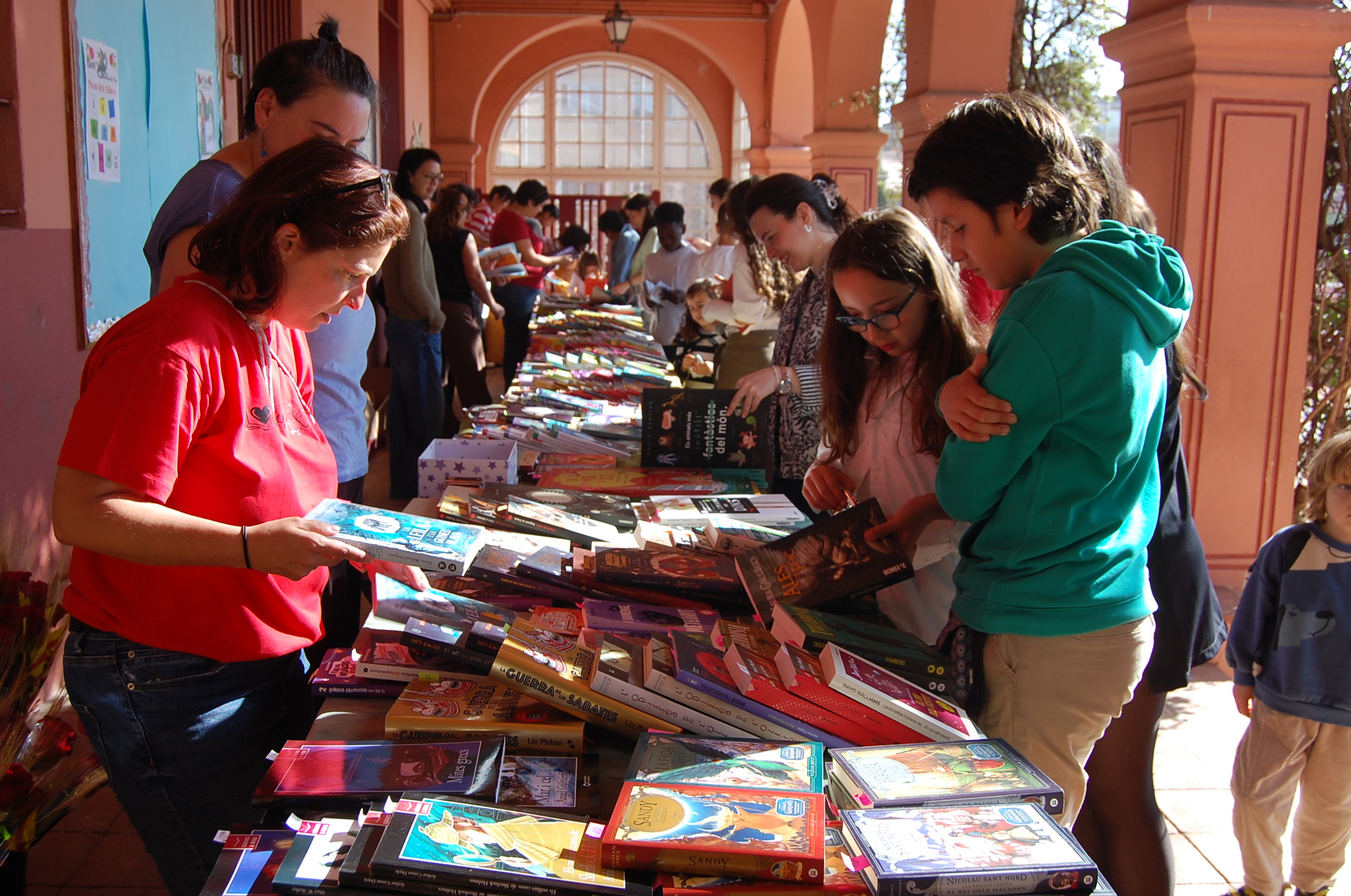Durant tot el matí el pati de l’escola es va convertir en una gran biblioteca a l’aire lliure, guarnida amb roses.