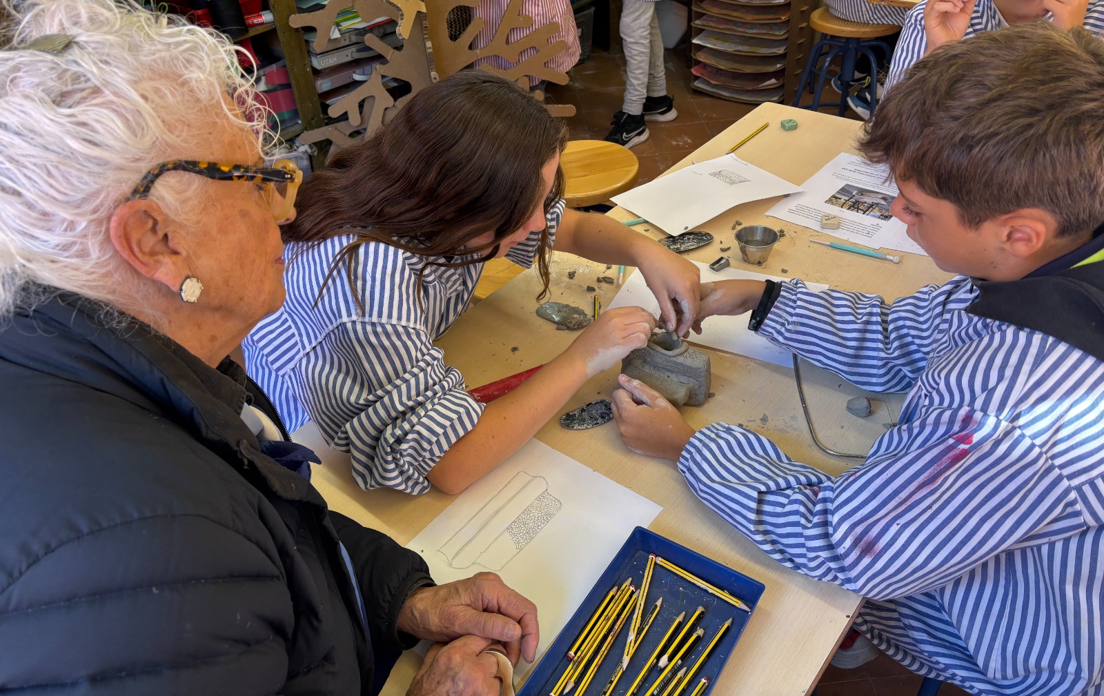 La seva mare va ser antiga alumna de l’Escola, l’any passat ens va explicar i vàrem visitar la seva exposició “Un foc mil·lenari” a la Fundació Vila Cases.
