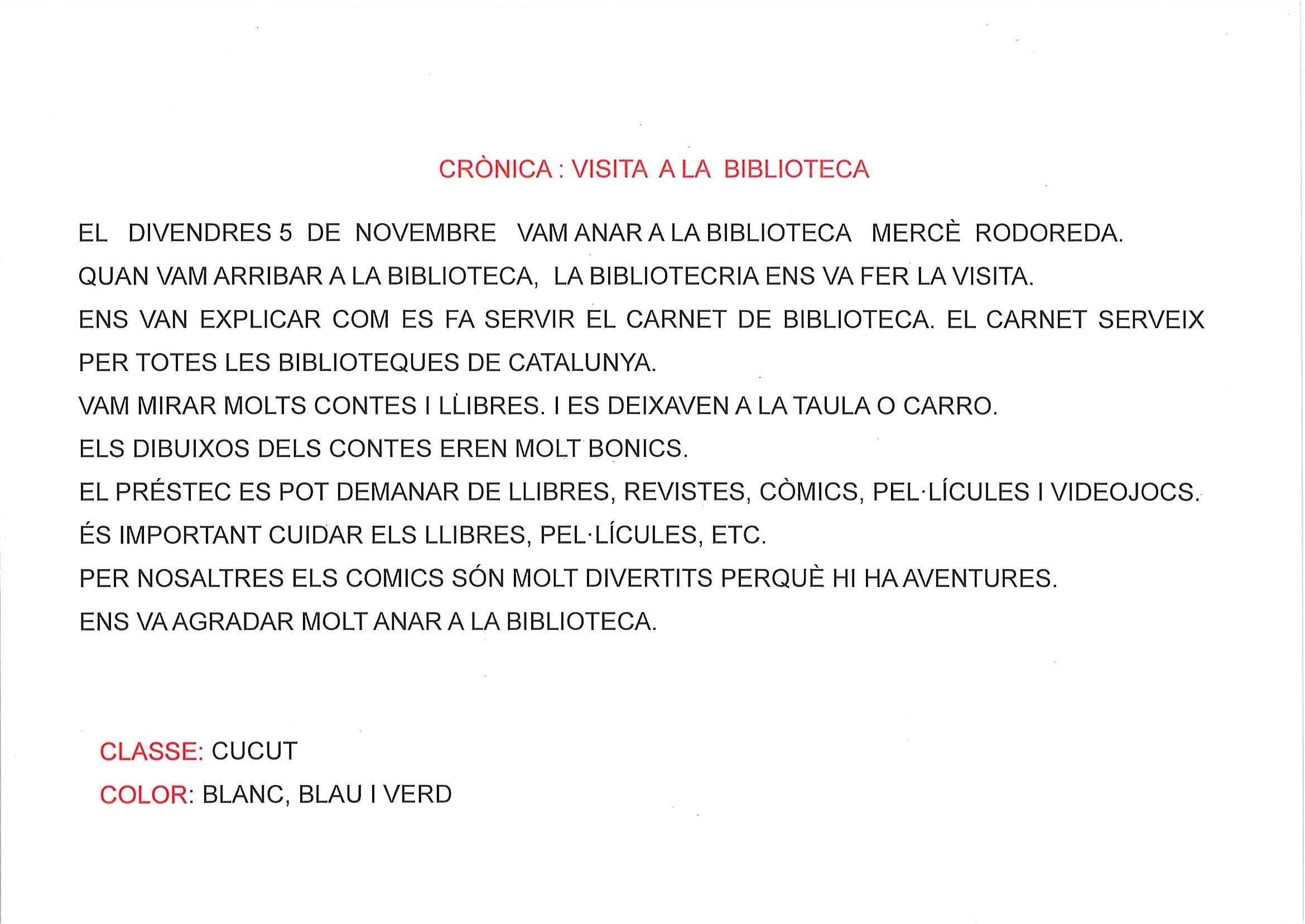 Visita a la bibliotecaPer admin / 12 de novembre de 2021 / Alumnes Biblioteca Cucut Curs 2021-2022 General Portada Primària visita / 2021-2022, biblioteca, crònica, cucut, Visita
