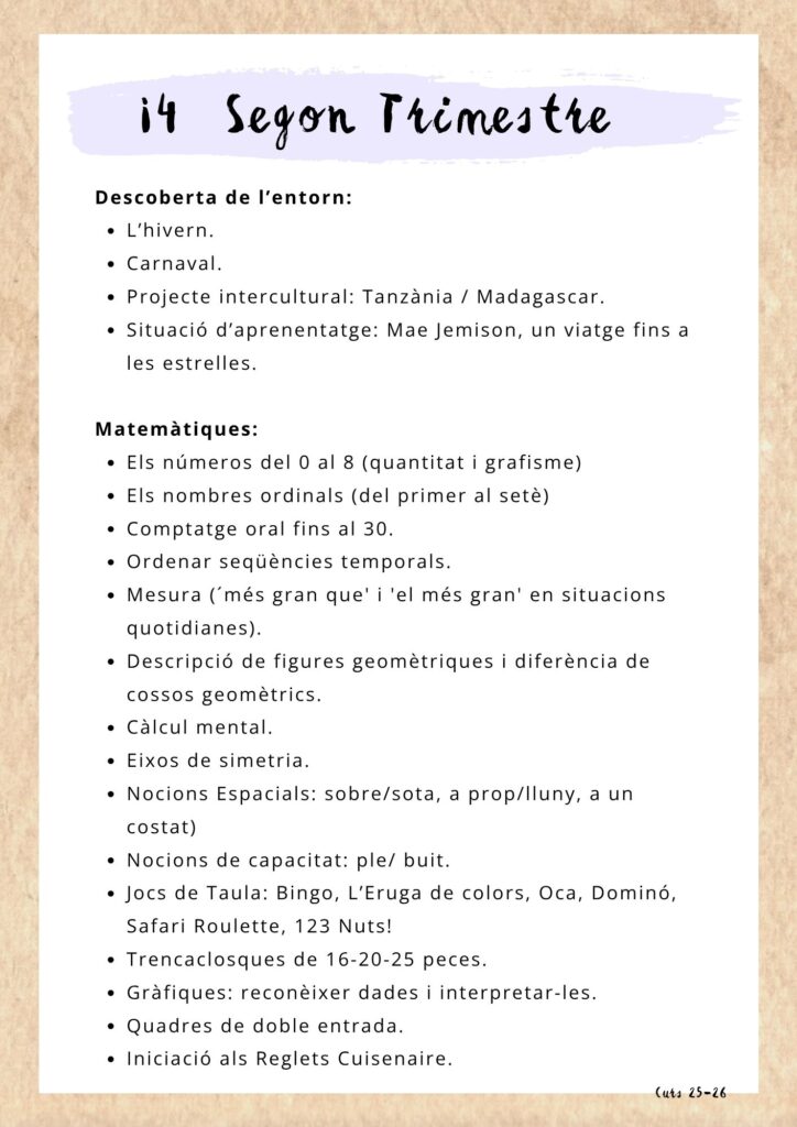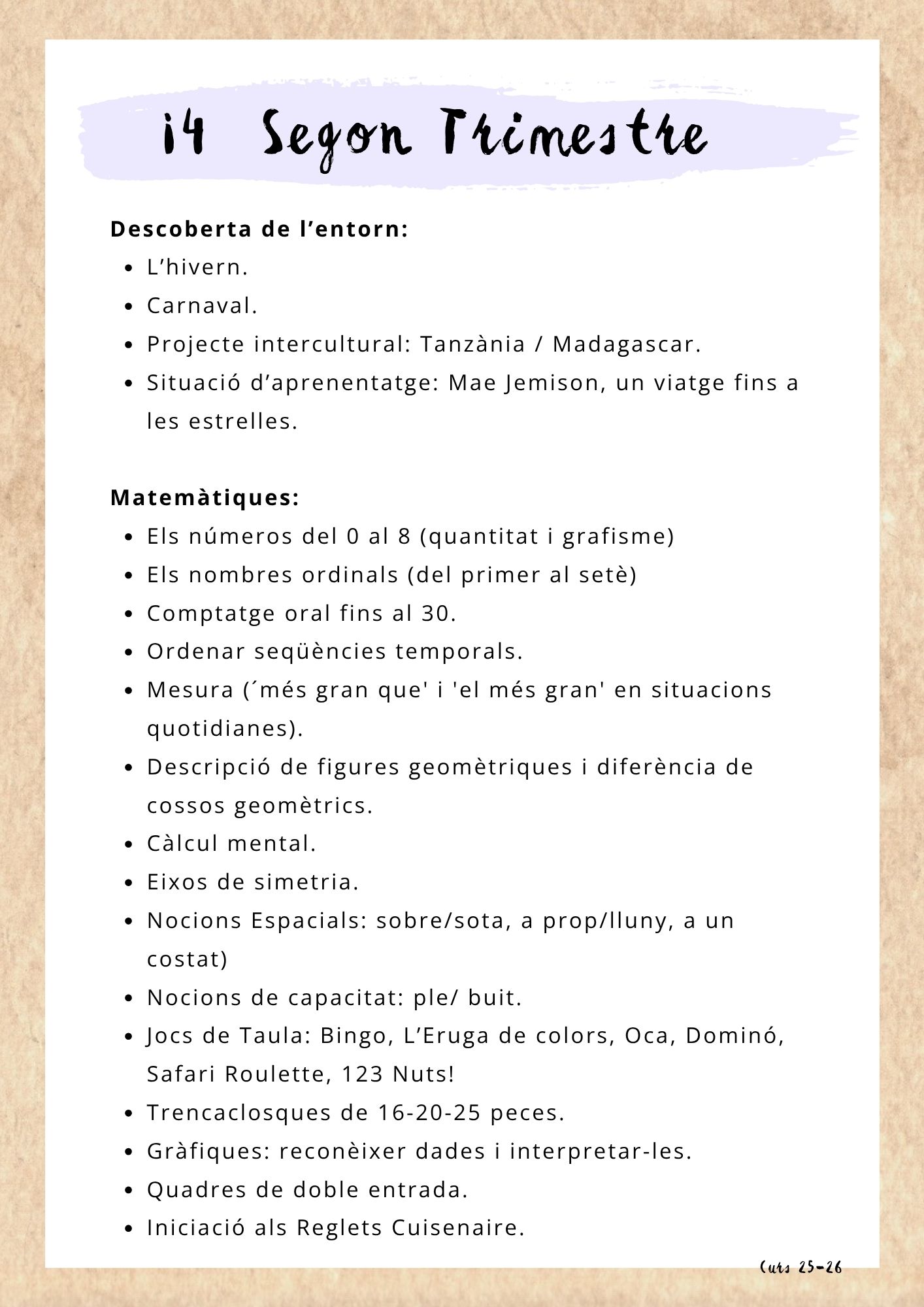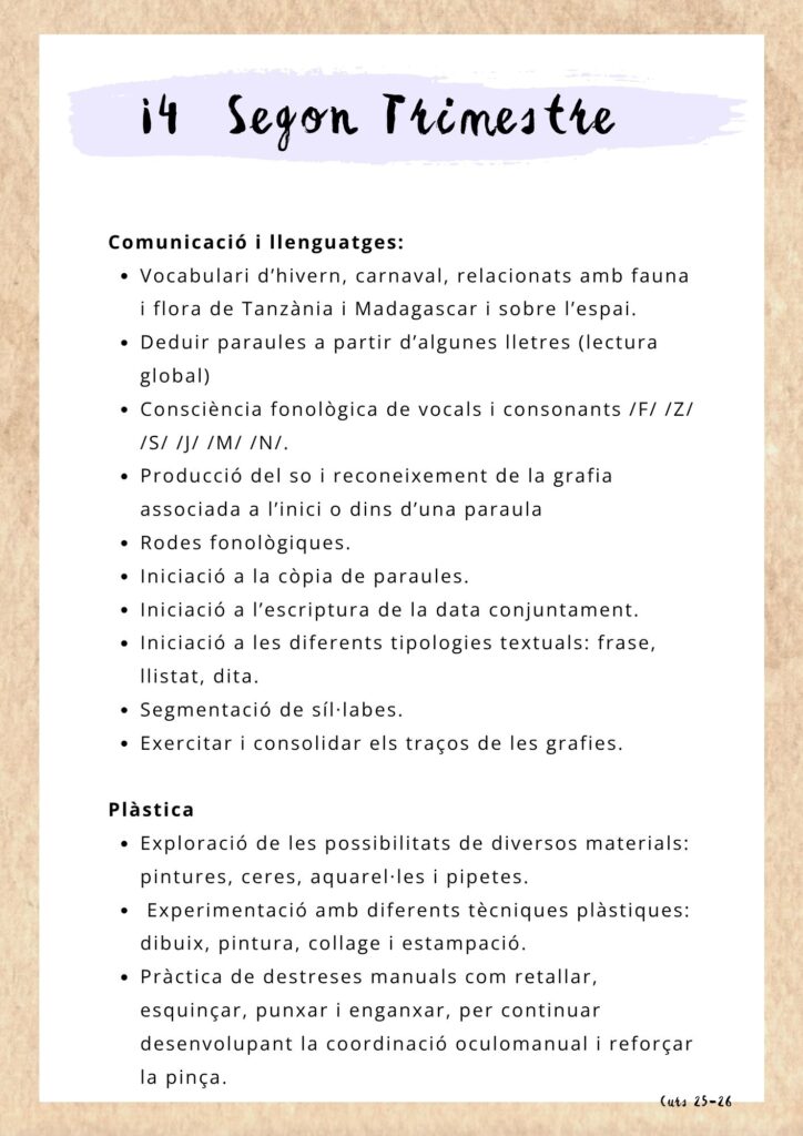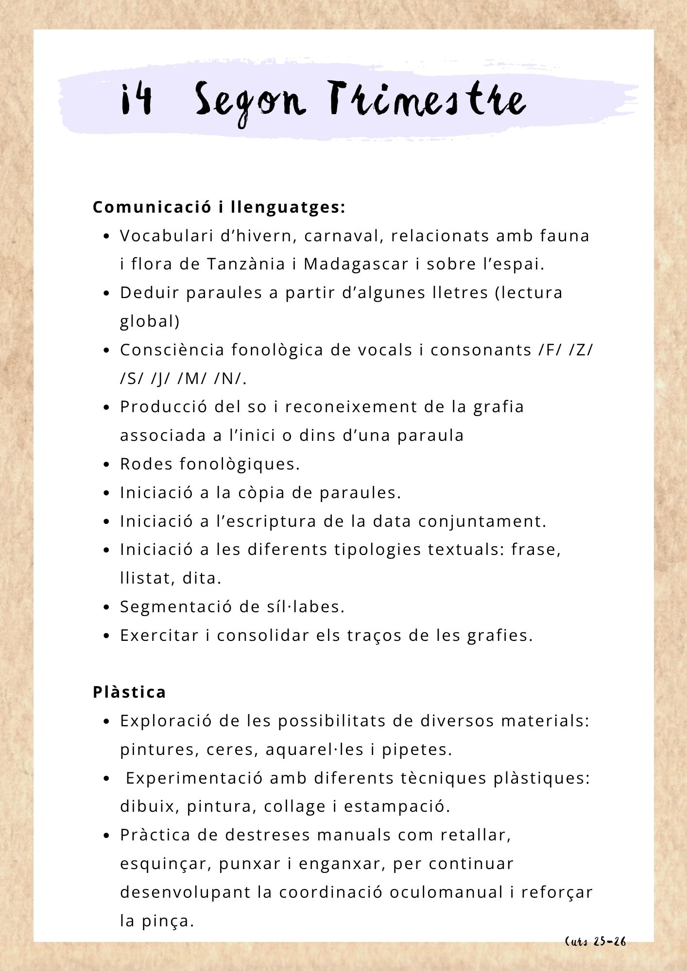Ara que hem arribat al final del segon trimestre, ens fa molta il·lusió compartir amb vosaltres els sabers i aprenentatges que hem anat construint al llarg d’aquests mesos, fruit del treball, la curiositat i les ganes de descobrir dels infants.