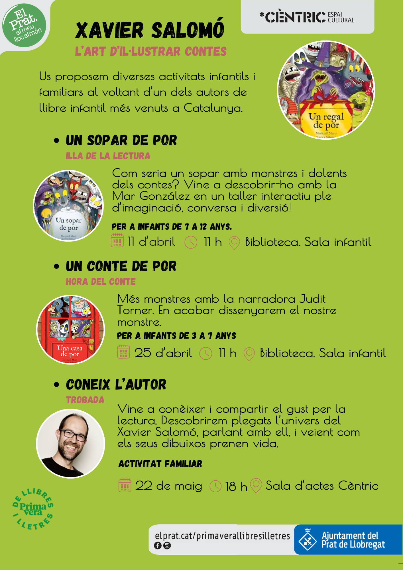 Durant aquestes sessions, els infants podran descobrir com neixen les il·lustracions dels contes i conèixer de prop el procés creatiu d’un artista. A més, també s’organitzarà una trobada amb en Xavier Salomó, una oportunitat única per conèixer-lo personalment, parlar amb ell i veure com els seus dibuixos prenen vida en directe.