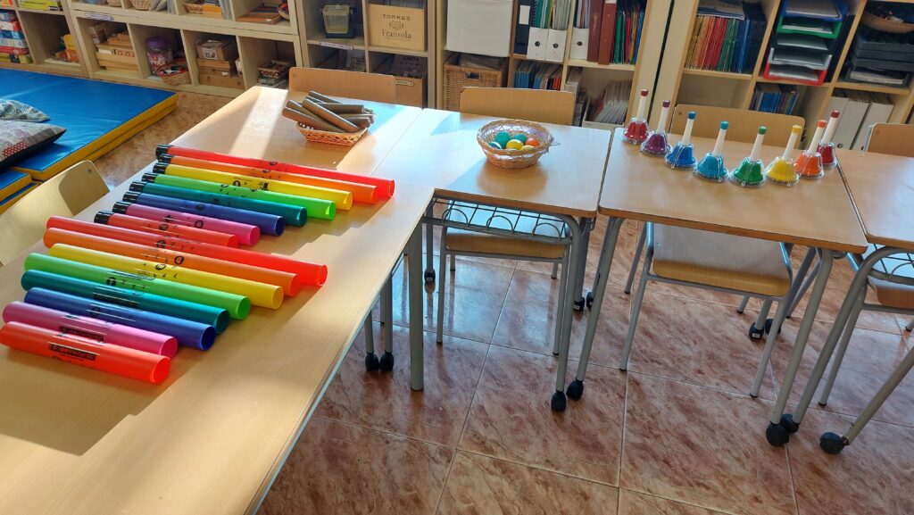 Iniciem el Taller Musical amb l’alumnat de primària amb propostes vàries amb instruments variats. L’alumnat ha xalat moltíssim amb els jocs rítmics i amb tanta emoció han acabat fent un conjunt instrumental. A tot el grup classe els agrada i tenen bones aptituds amb els instruments de percussió.