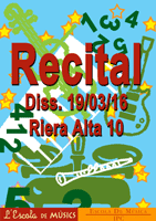 Dissabte 19 de març tocaran els grups musicals a l’Escola Collaso i Gil C/Abat Safont 12 amb el següent programa: