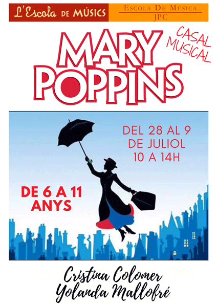 Benvolgudes famílies, Aquest any ja tenim el casal d’estiu en marxa. Dues propostes molt divertides: un clàssic per als petits i un musical nou per als adolescents. Mary Poppins de 6 a 11 anys i The Prom de 12 a 16 anys. Les dates seran del 28 de juny al 9 de juliol. El casal de petits serà al matí i el d’adolescents a la tarda. Trobareu tota la informació en els pdf adjunts: