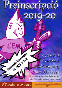 Si teniu dubtes de com fer la preinscripció o de quines assignatures matricular-vos, us podeu posar en contacte amb el professor/a d’instrument (tutor), amb secretaria o concretar una reunió individual amb direcció. També us adjuntem un dossier, on trobareu informació de l’Escola (ideari, programació, assignatures, professorat, activitats i d’altres).