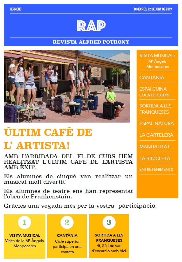 17/06/19Els alumnes de Cicle Inicial i Cicle Mitjà han quedat finalistes al VI concurs de Vídeos Experimentals organitzats pel CRP de la Noguera amb el suport del Consell Comarcal de la Noguera i l’Ajuntament de Balaguer.