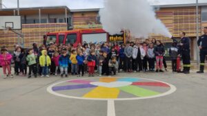 Aquest dilluns el camió dels BOMBERS ha aparcat al pati de l’escola, i el Dani, pare de la Berta i la Bruna, i l’Aleix, fill de la nostra cuinera Carme, ens han explicat un munt de coses: