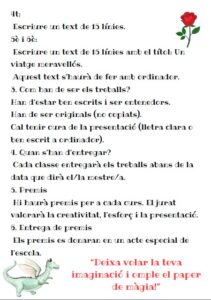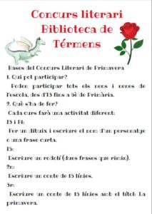 La biblioteca de l’escola ha organitzat un nou concurs literari de PRIMAVERA adreçat a tot l’alumnat, des d’I3 fins a 6è. Cada nivell ha participat amb una proposta adaptada a la seva edat, des de dibuixos amb petites frases fins a la creació de contes i textos originals. El jurat ha valorat la creativitat, l’esforç i la presentació dels treballs.