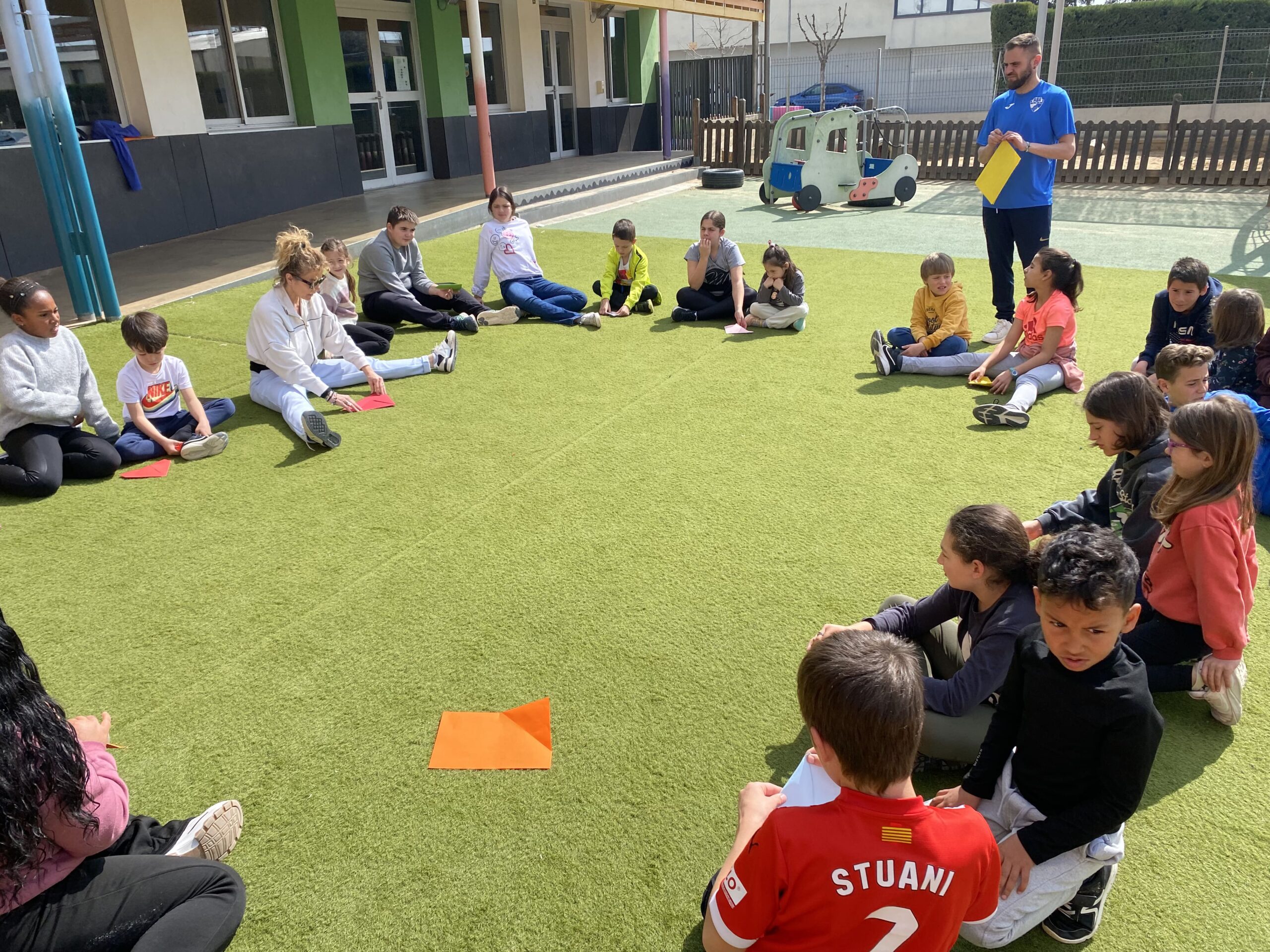 Vàrem baixar al pati per fer una dinàmica relacionada amb les activitats que ens proposen des de la fira dels somnis, on vam fer vaixells de paper amb missatges d’ànim per crear un mòbil que estarà penjat a l’estació d’autobusos Balaguer!