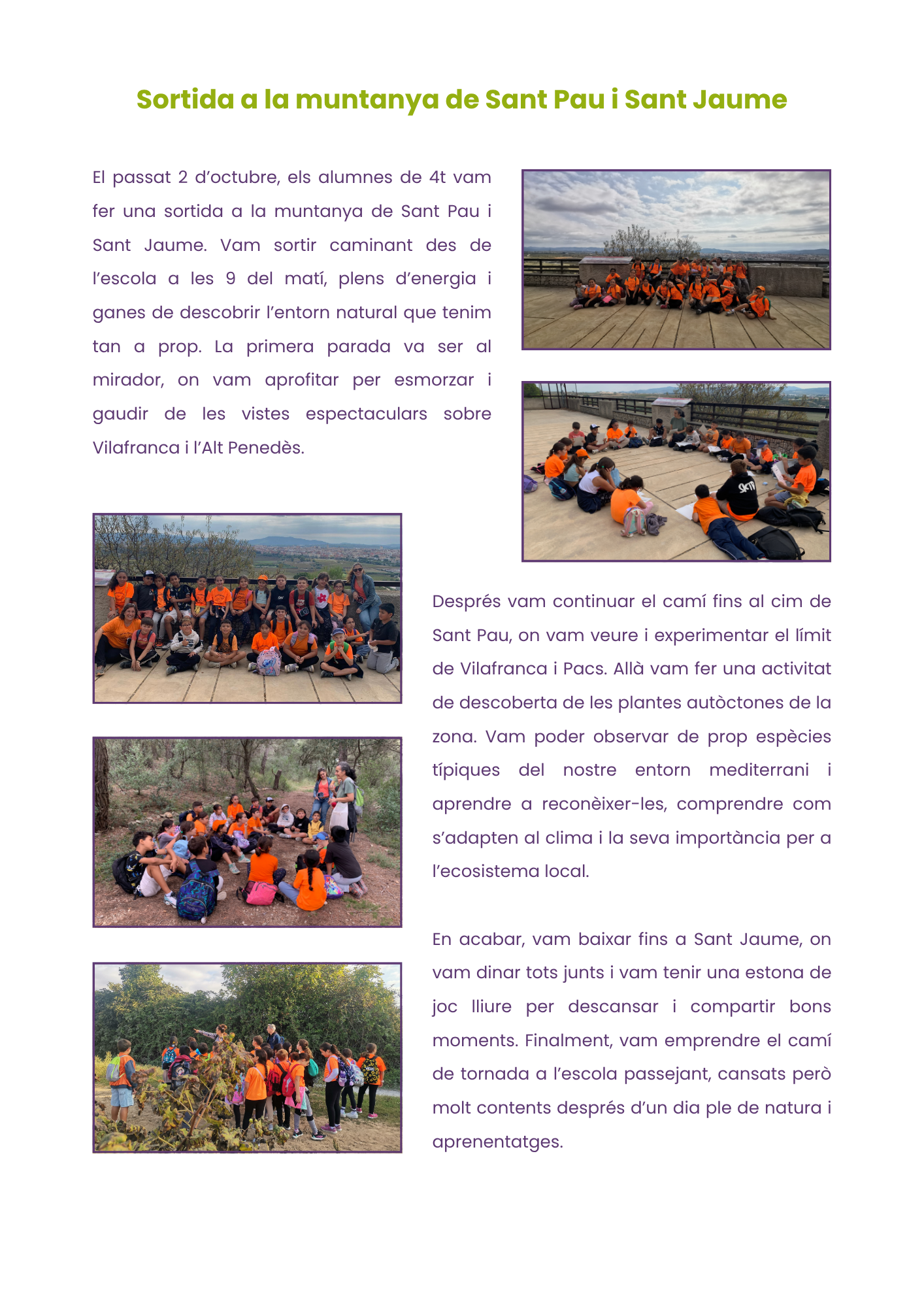 Sortida a la muntanya de Sant Pau i Sant Jaume amb els grups de quart Feu un comentari / Per LR / 8 d'octubre de 2025 / Cicle mitjà (tercer i quart) General Portada Presentació Sortides i colònies