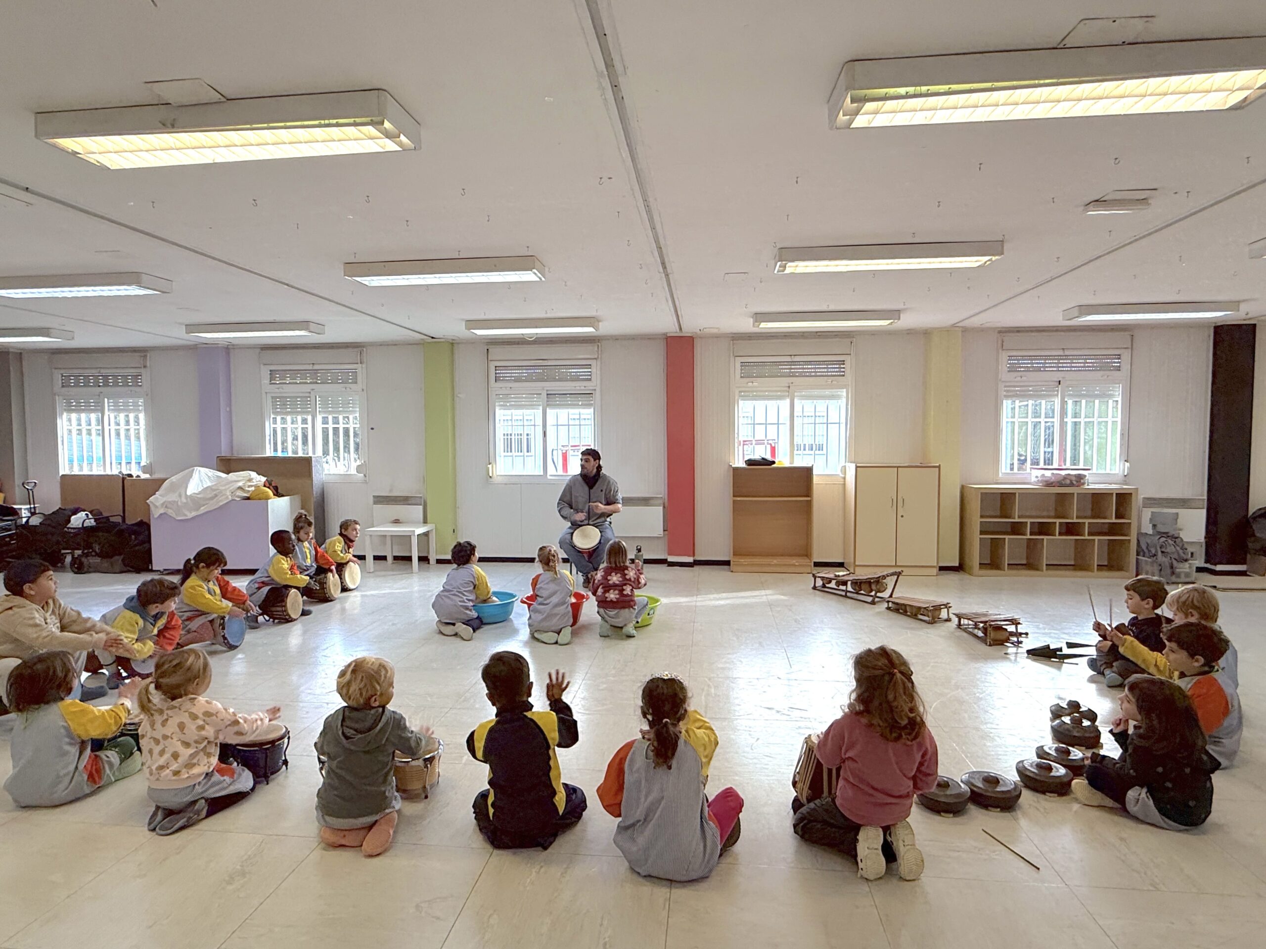 Aquesta setmana l’escola s’ha omplert de música i ritme. Els nens i nenes de Ponent han pogut conèixer i tocar diversos instruments de percussió amb les seves pròpies mans, explorant les diferents sonoritats i descobrint com sonen fent petits gestos. Una activitat genial per treballar l’oïda i la coordinació, i sobretot, per passar-s’ho bé!