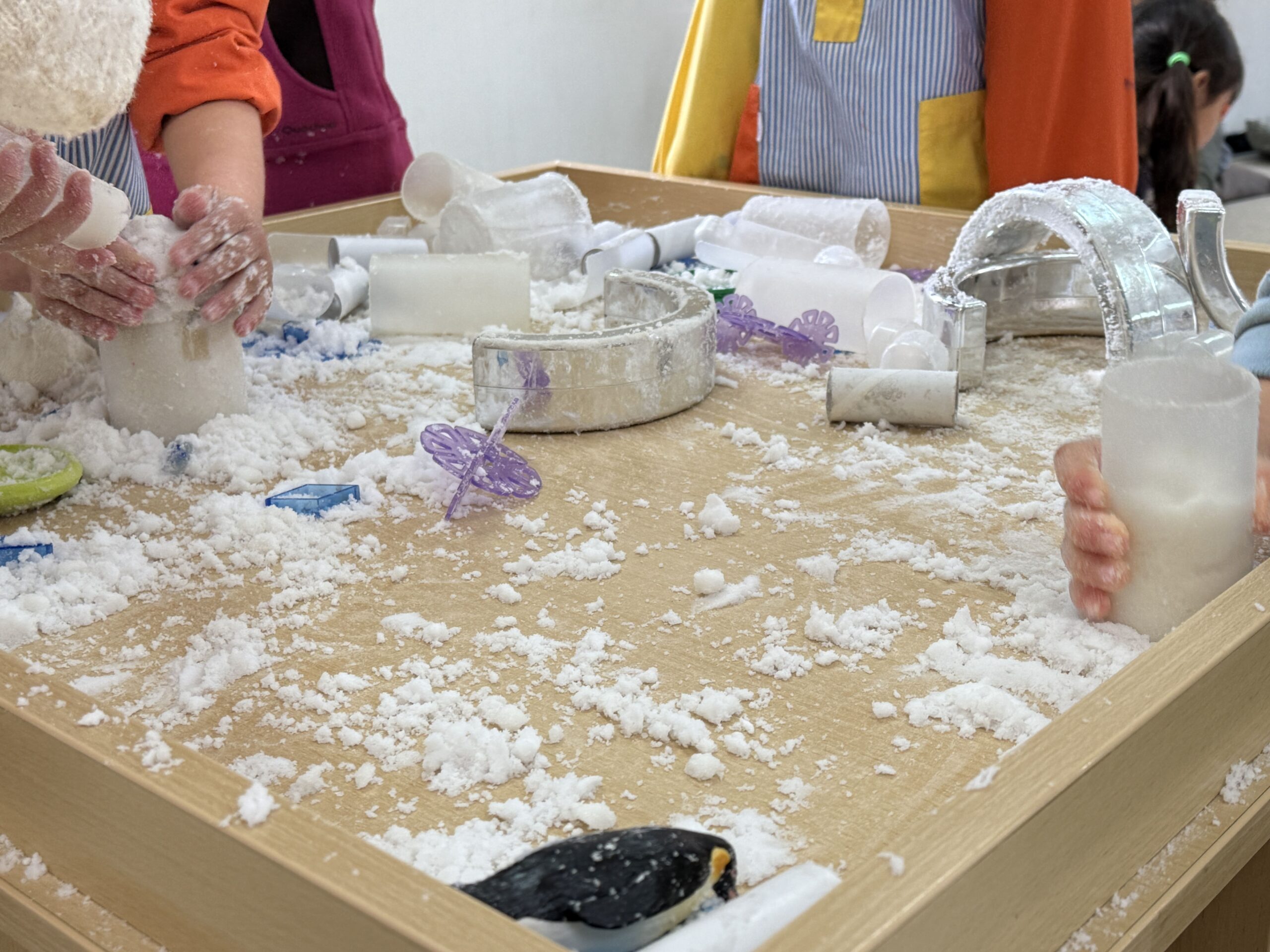 A Ponent vam crear un minimón on vam barrejar bicarbonat amb una mica d’aigua. Els infants van tocar la barreja amb les mans i van descobrir diferents sensacions així com la seva textura, temperatura…